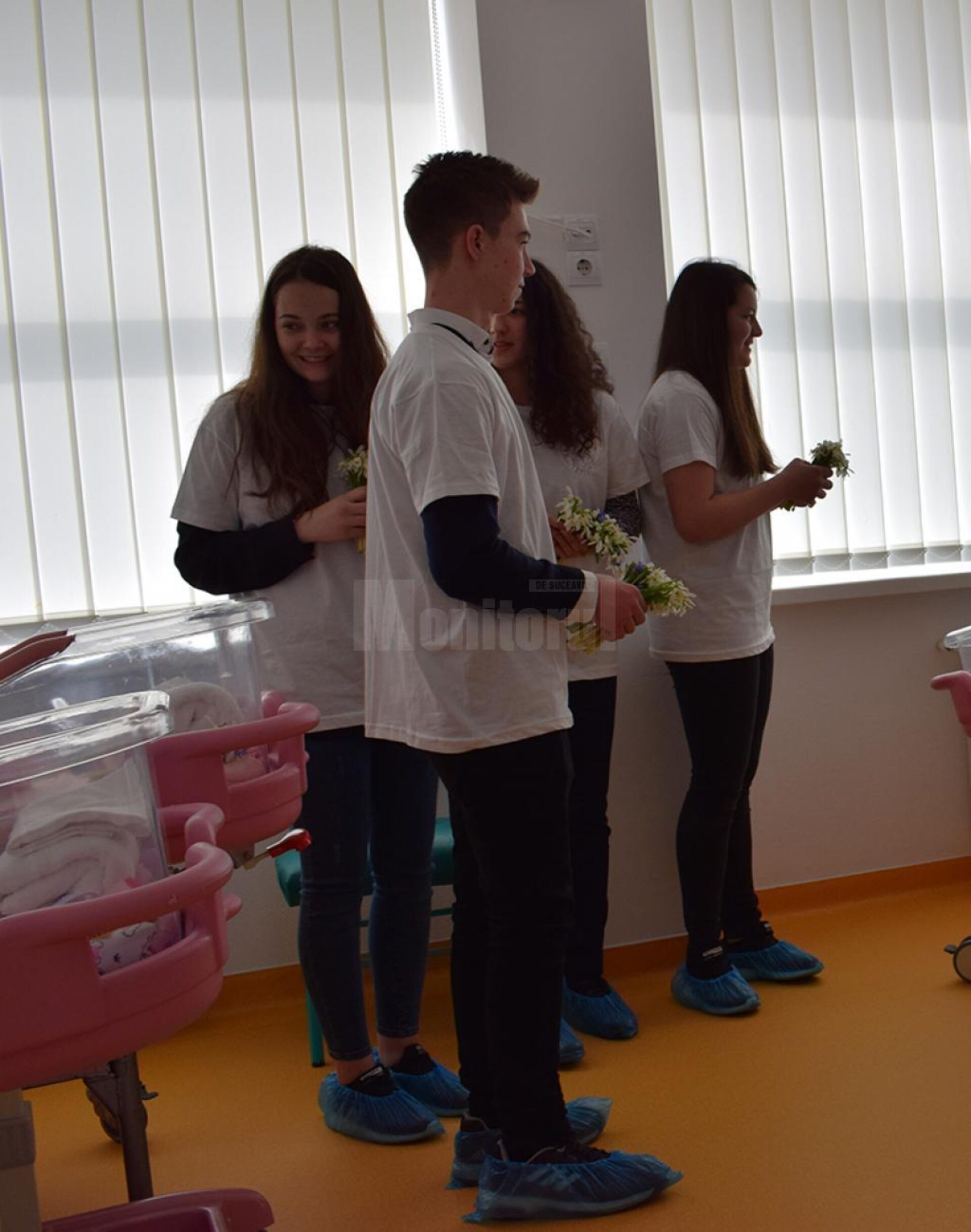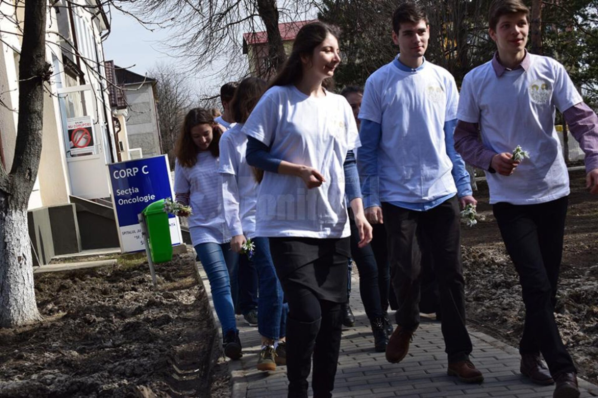 Tinerii au oferit flori, au vorbit cu mămicile și cu bolnavii, i-au îmbrățișat, au furat de la ei zâmbete largi și frumoase și chiar lacrimi de bucurie.