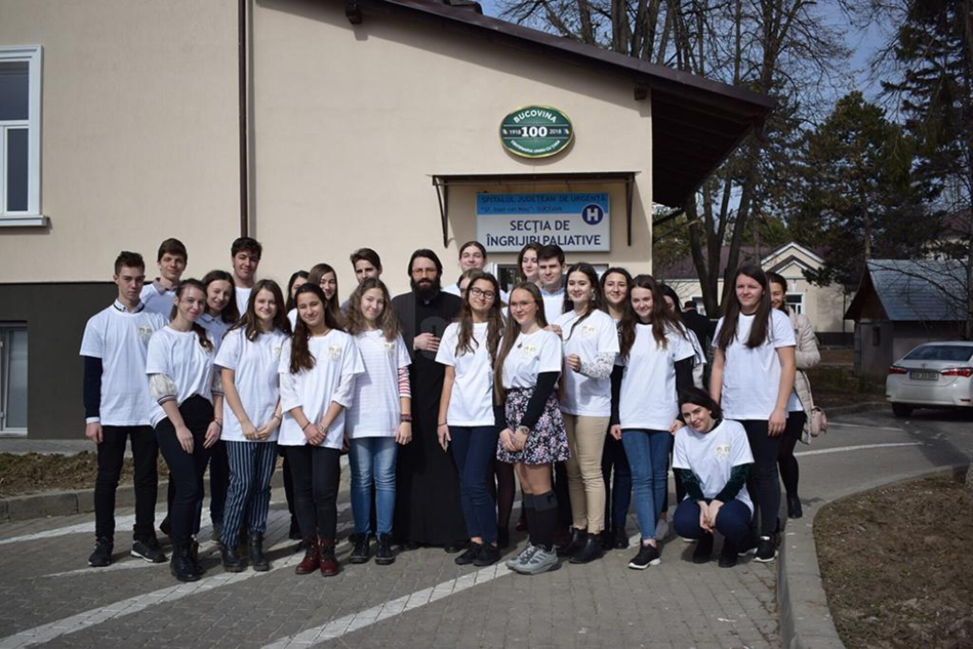 25 de tineri cu suflete frumoase, coordonați de părintele Justinian-Remus Cojocar, preot la Biserica „Sfântul Dumitru” din Suceava, au făcut o vizită de bucurie mămicilor de la Secția de Obstetrică-Ginecologie și bolnavilor de la secțiile de Oncologie și Îngrijiri Paleative ale Spitalului de Urgență „Sfântul Ioan cel Nou” Suceava. Au arătat ca o veritabilă echipă, toți în tricouri albe, entuziaști, bucuroși să poarte sigla ATOS în dreptul inimii.