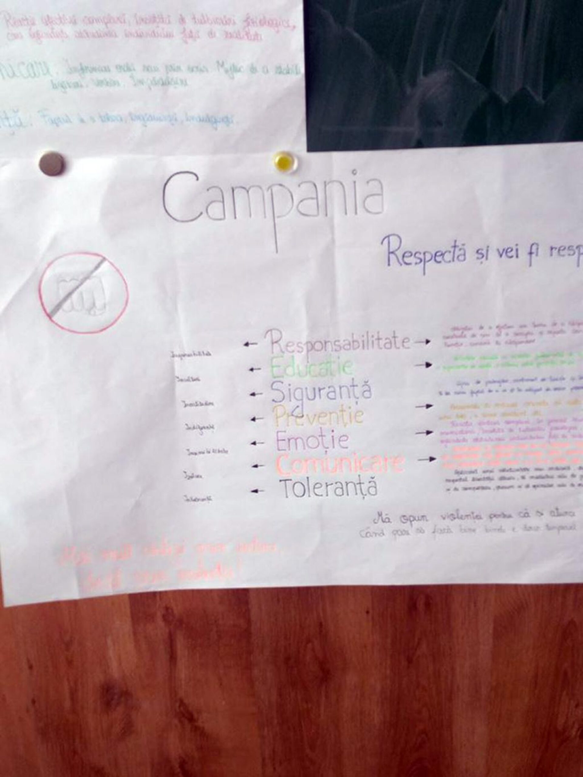 Ecouri ale ideilor susținute, respectiv NU violenței și Da asertivității, au reprezentat pliantele și semnele de carte realizate de elevi ai școlii noastre. Prin intermediul acestor materiale informative cu nuanțe persuasive, a fost promovată Campania RESPECT nu doar în mediului școlar ci și în comunitatea locală.
