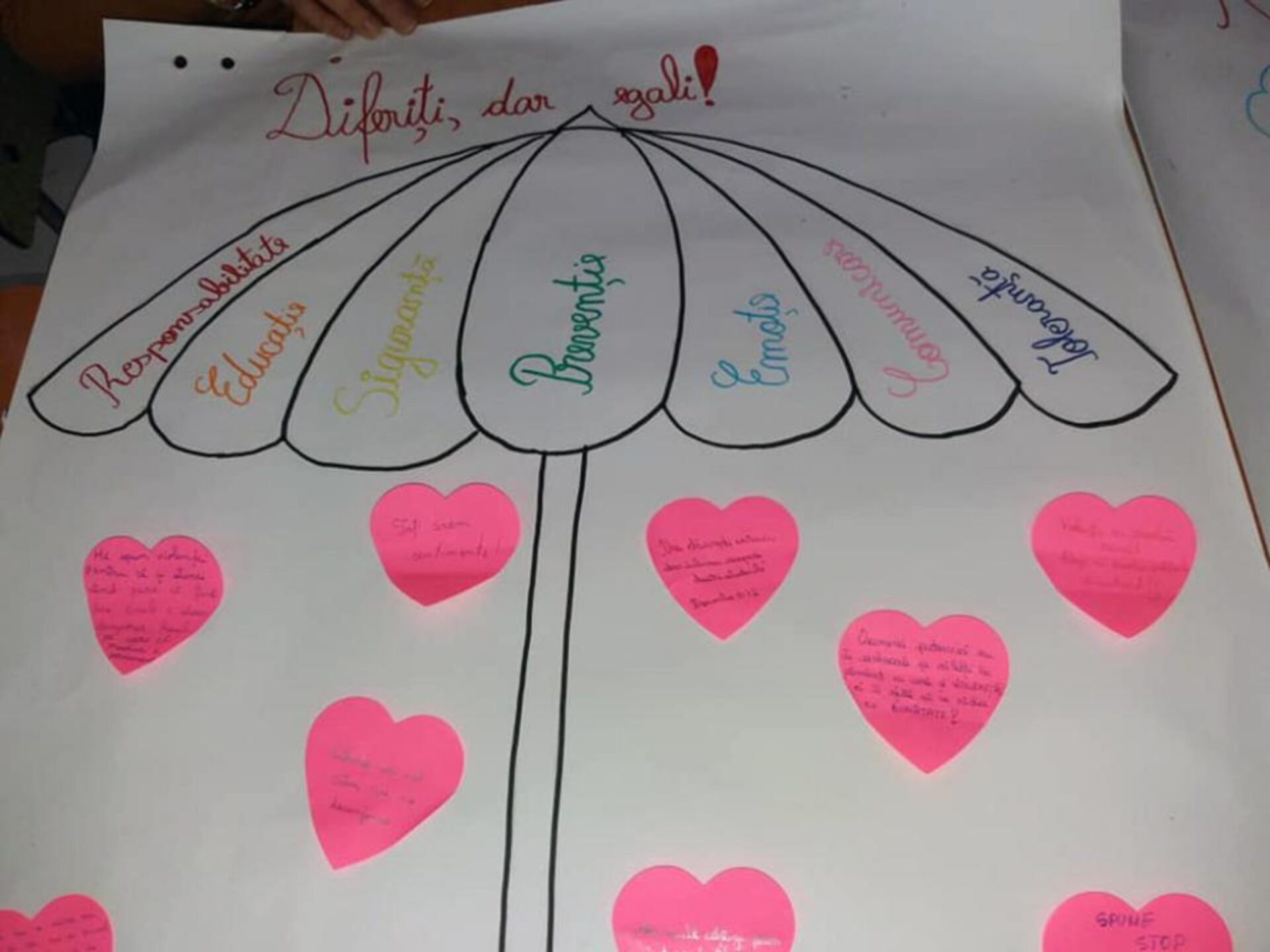 Activitățile au fost variate și atractive, prin folosirea unor metode activ-participative: cvintetul, acrostihul, tehnica 3-2-1, știu-vreau să știu-am învățat, joc de rol, rebusul, tehnica acvariului, ciorchinele, etc. S-au explorat valențele educative ale textului literar „Minunea” sau ale unor filmulețe didactice, iar creativitatea elevilor a prins contur printr-o largă paletă de finalități practice: pliante, planșe, postere, materiale PPT, eseuri, creații plastice, semne de carte. Desigur au fost și rezultate intangibile: adoptarea unor comportamente și atitudini civilizate; dezvoltarea competenței de comunicare argumentativă; însușirea unor valori umane: responsabilitate, toleranță, altruism, respect; creșterea stimei de sine prin validare la nivelul grupului de lucru, exersarea creativității și abilităților de lucru în echipă, etc.