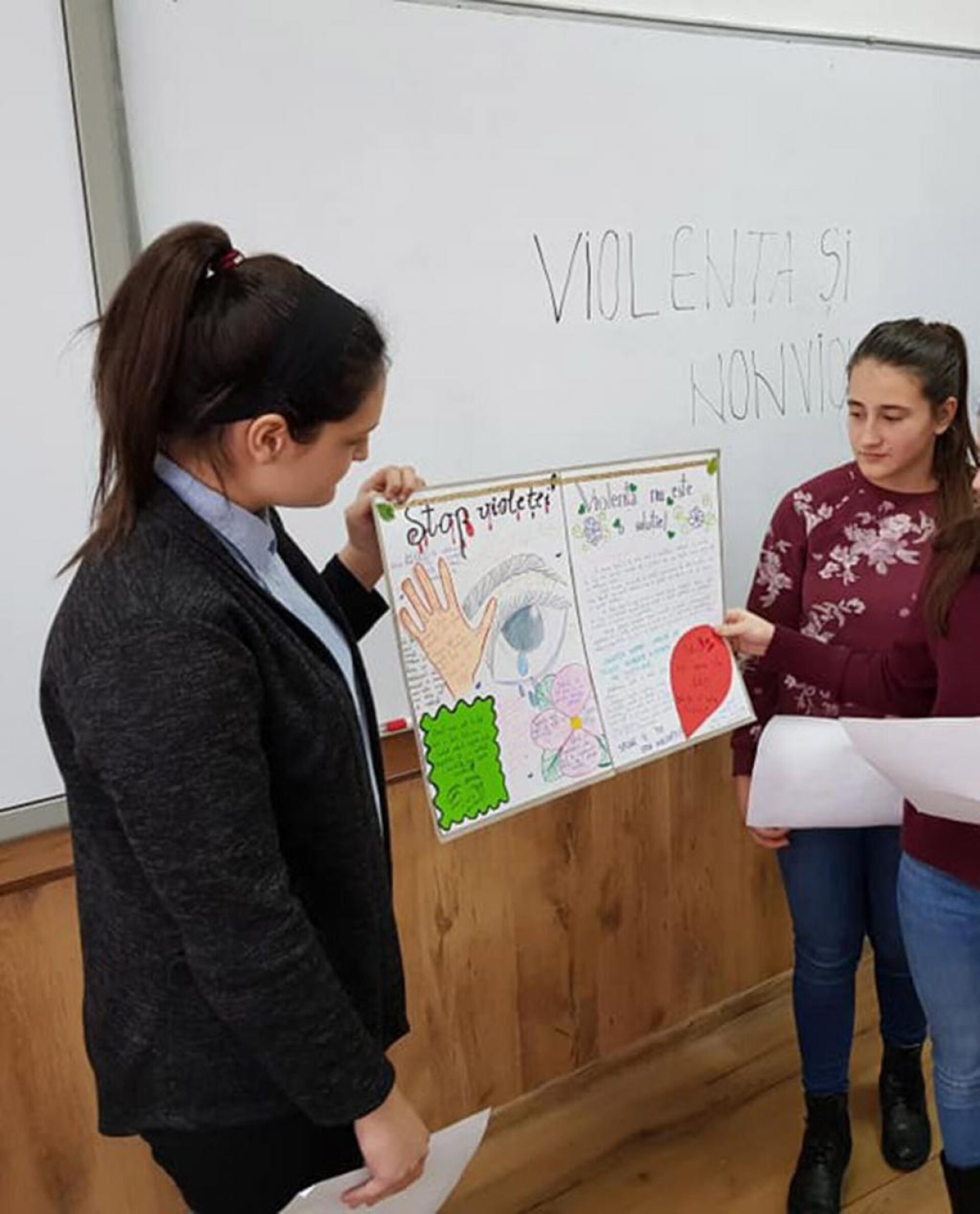 O activitate educativă și empatică a fost „Boboc de gimnaziu sau absolvent de liceu, nu contează – Respectul funcționează în ambele sensuri!”. Cu entuziasm, emoții, și multe râsete, viitorii absolvenți i-au învățat, prin joc, pe bobocei cum să gestioneze comportamentele de tachinare. Fiecare participant a purtat în piept un ecuson în formă de porumbel – mesagerul păcii -iar printre metodele folosite, menționăm: energeizer-ul „Aplauzele” și jocul „Rețeaua” sau „Pânza de păianjen”. O altă activitate valoroasă desfășurată în școala noastră a fost „Barometrul violenței”, sarcinile propuse au fost menite să-i ajute pe elevi să identifice mai ușor comportamentele cotidiene care susțin dominarea, inegalitatea de putere, bullying-ul și violența. Activitatea „RESPECT! Stop laser! Siguranța ta contează!”, realizată în parteneriat cu Poliția locală, a avut un impact puternic asupra participanților și a condus la identificarea unor comportamente indezirabile și la trecerea în revistă a unor măsuri de prevenție.