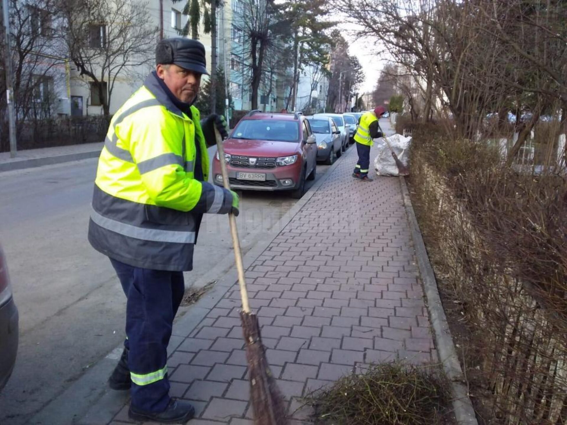 Pe de o parte, echipe de salubrizare îndepărtează formațiunile de zapadă/gheață din grămezile formate pe arterele principale (bvd. 1 Decembrie, str. Calea Obcinilor, bvd. 1 Mai, str. Universității, bvd. George Enescu, str. Ștefan cel Mare, str. Ana Ipătescu, str. Calea Unirii), se ocupă de curățarea străzilor, trotuarelor și spațiilor verzi, curățare rigole și măturat manual pe arterele principale, iar pe de altă parte, se acționează cu măturat mecanizat trotuare și carosabil, ba chiar și cu toaletarea gardului viu, pe străzi precum Mărășești, prof. Leca Morariu, str. Oituz, Samoil Isopescu, Alexandru cel Bun.