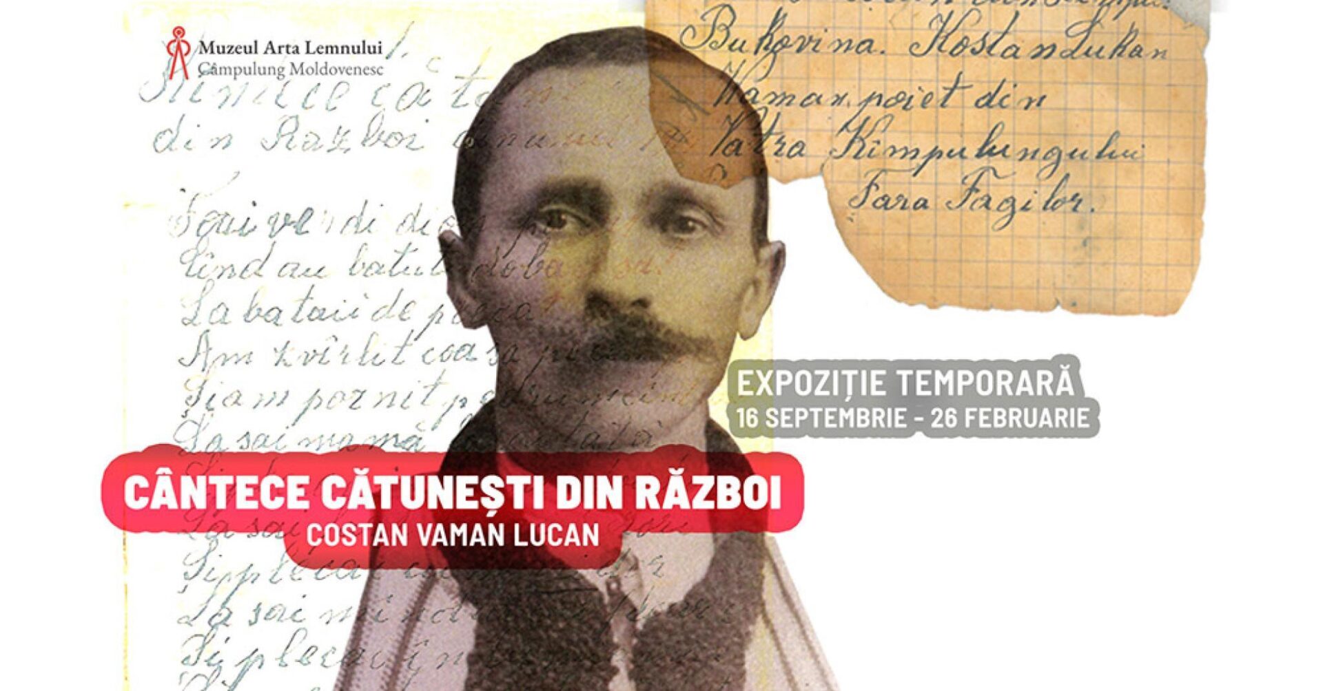 Vineri, 16 septembrie, de la ora 18.00, Muzeul Arta Lemnului (MAL) din Câmpulung Moldovenesc va organiza vernisajul expoziției temporare fanion „Cântece cătunești din Război – Costan Vaman Lucan”.