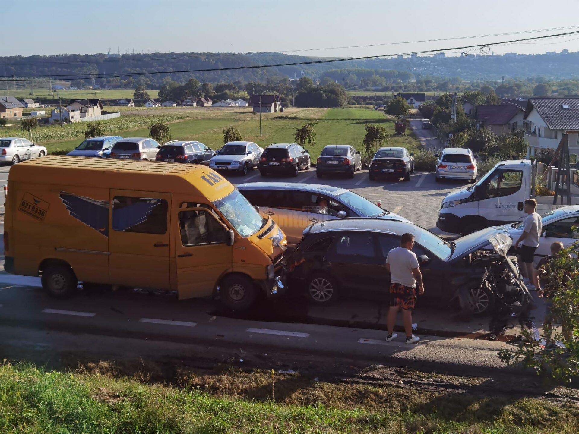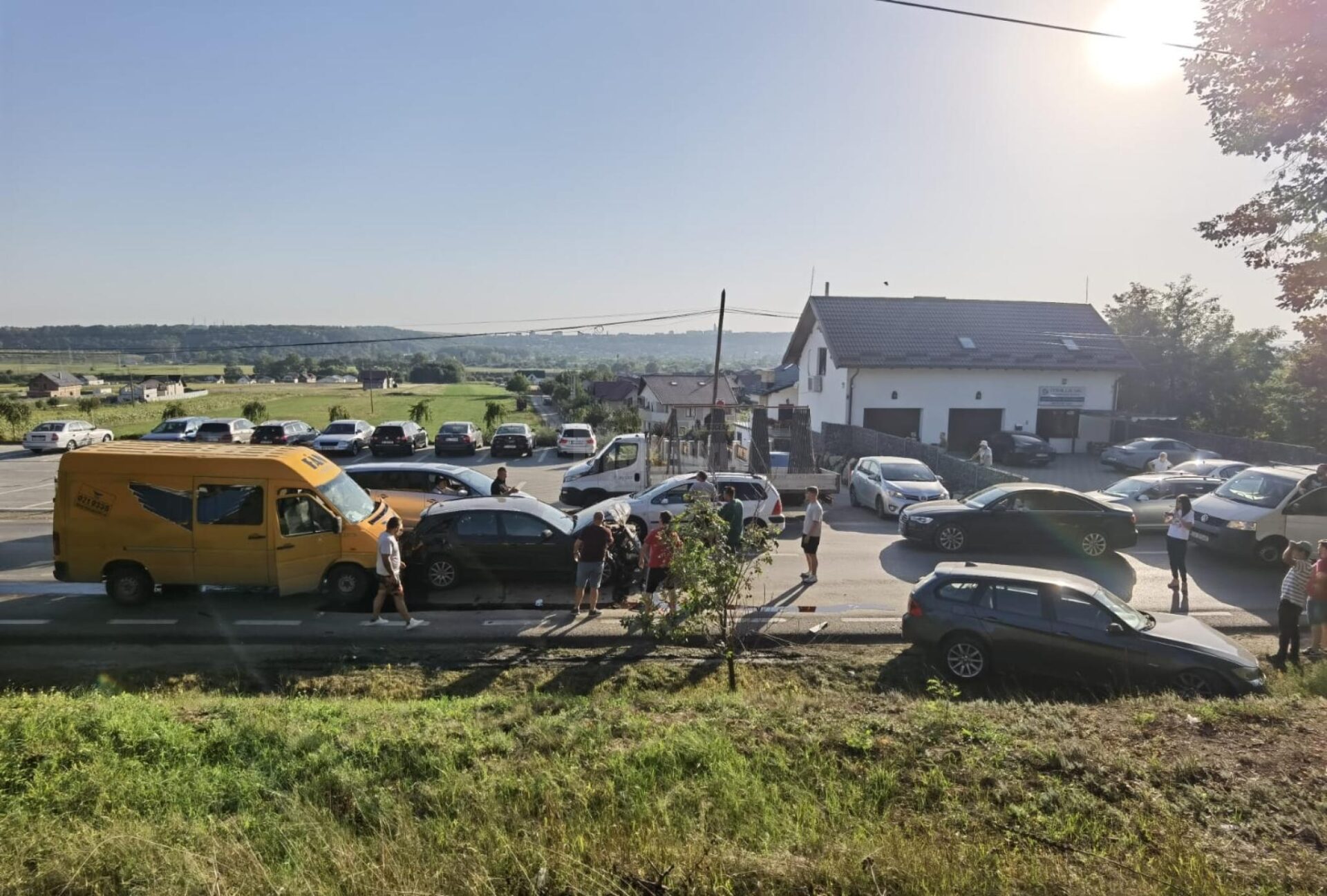 Trei autoturisme și o autoutilitară au fost implicate într-o tamponare în lanț petrecută joi în jurul orei 18,00, la intrarea în municipiul Suceava dinspre Plopeni. Unul dintre șoferi a suferit leziuni după ce a dat cu capul de parbriz, în timp ce un al doilea conducător auto acuza și el leziuni, fiind evaluat de echipajele medicale care au intervenit la fața locului. Accidentul a blocat traficul de pe drumul național 29 Suceava- Botoșani. Circulația a fost deviată prin cartierul Tinereții. Pompierii militari care au intervenit la fața locului transmit că în accident au fost implicate în total șapte persoane.