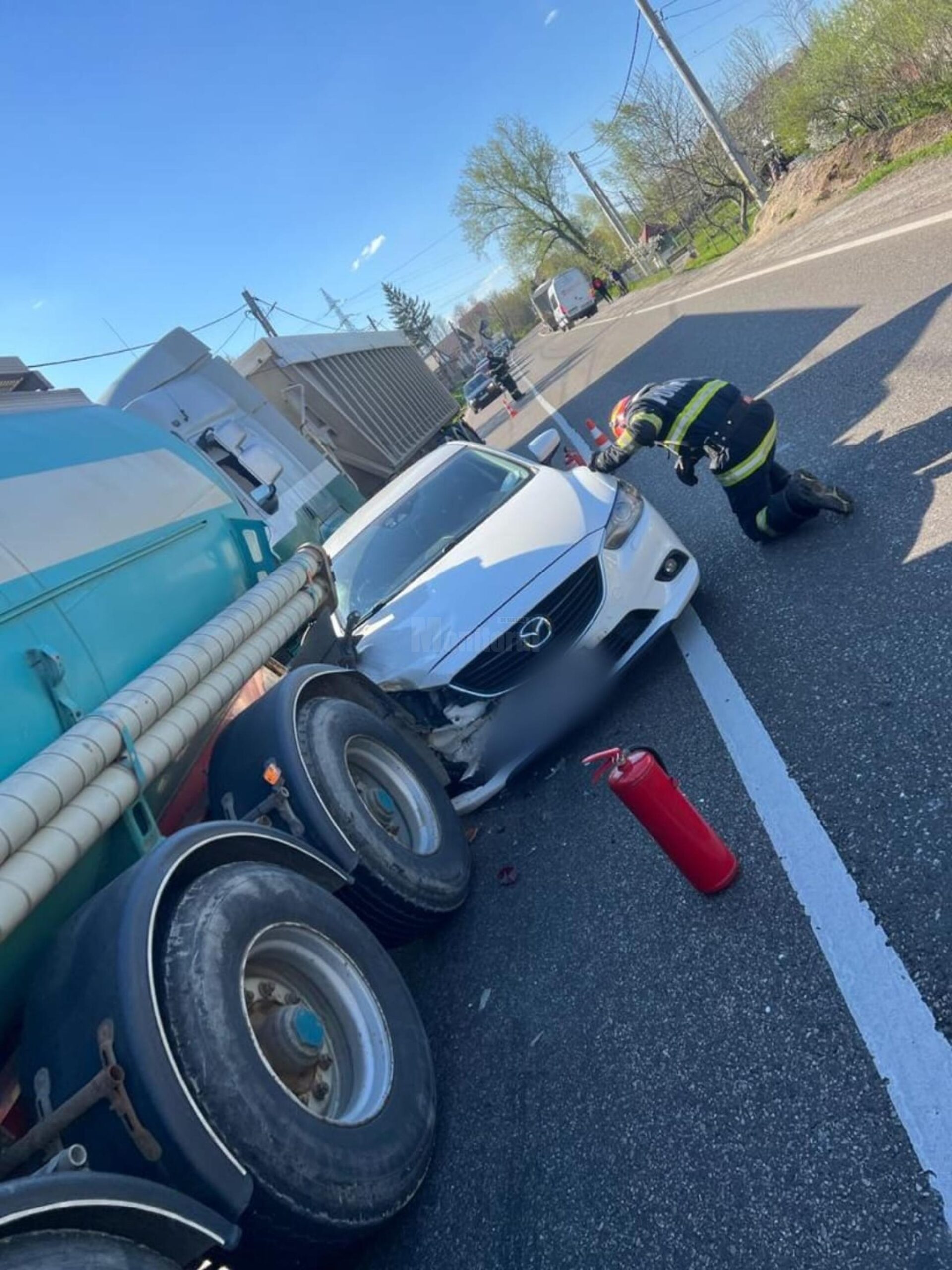 Trei autovehicule, un autotren încărcat cu cereale, o autocisternă (goală) și un autoturism, au fost implicate într-un accident în cursul acestei după-amiezi, pe raza localității Bunești.