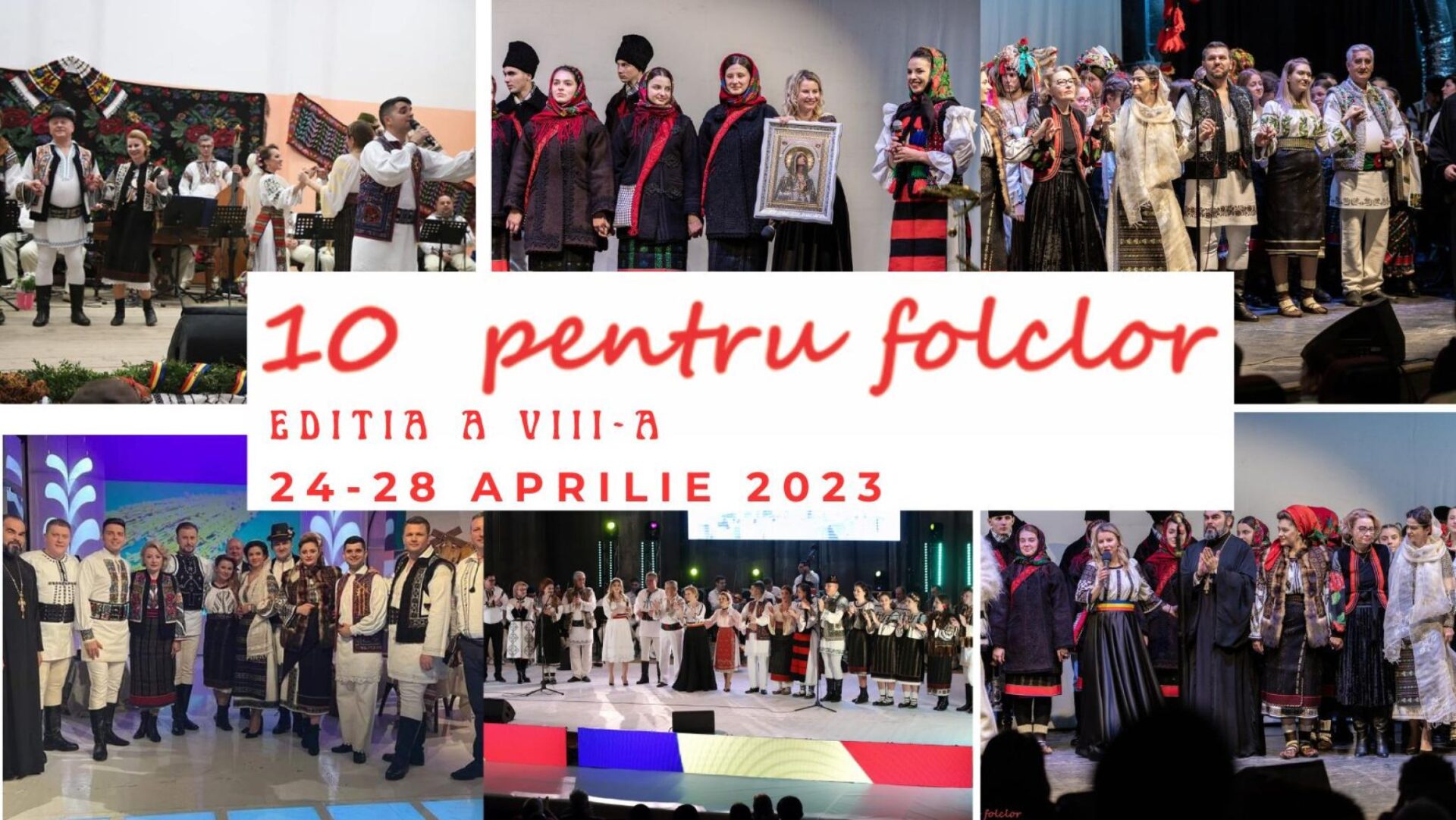 Anul acesta, evenimentul va reuni artiști din opt zone folclorice ale țării, spre bucuria iubitorilor de muzică populară, de tradiții autentice, de joc și voie bună. Inițiatoarea proiectului „10 pentru folclor”, Mihaela Bârsan, ne-a spus că în prima zi a caravanei, pe 24 aprilie, după spectacolul de la Suceava, artiștii vor merge la Bălăceana, la ora 17:00, pentru ca marți, 25 aprilie, gazde să fie iubitorii de folclor și copiii din Sadova (ora 13:00) și Fundu Moldovei (ora 18:00). Miercuri, 26 aprilie, Caravana „10 pentru folclor” va ajunge la Fântâna Mare (ora 10:00) și Forăști (ora 15:30), joi, la Bunești (ora 13:00) și Pătrăuți (ora18:00), și vineri, la finalul „călătoriei folclorice”, la Stroiești (ora 13:00) și Ciprian Porumbescu (ora 17:00).
