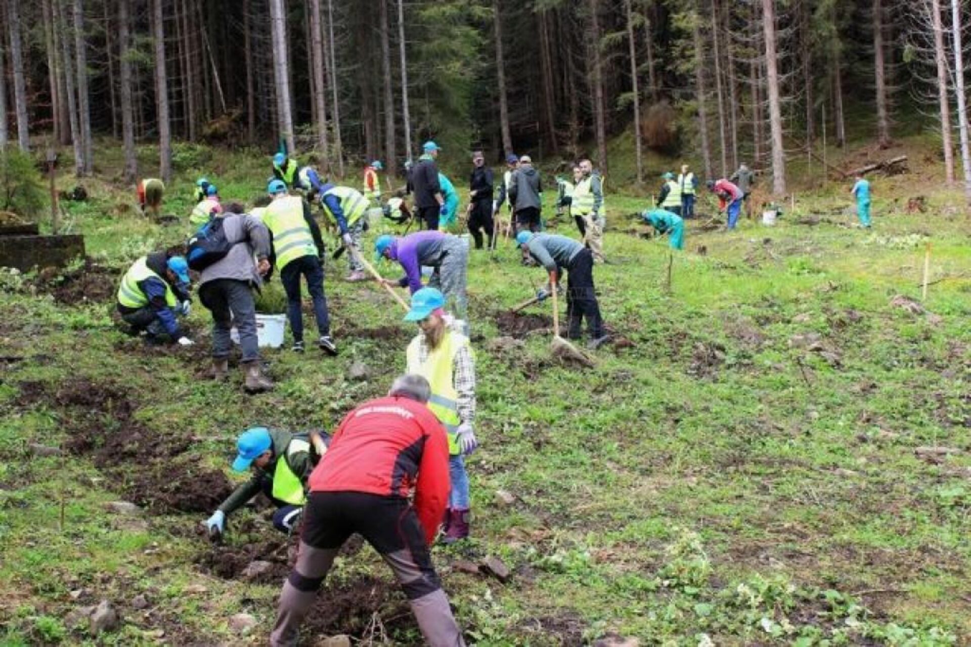 Carmen Brumă și voluntarii din Vatra Dornei au plantat 2.000 de puieți de brad la Dorna Candrenilor