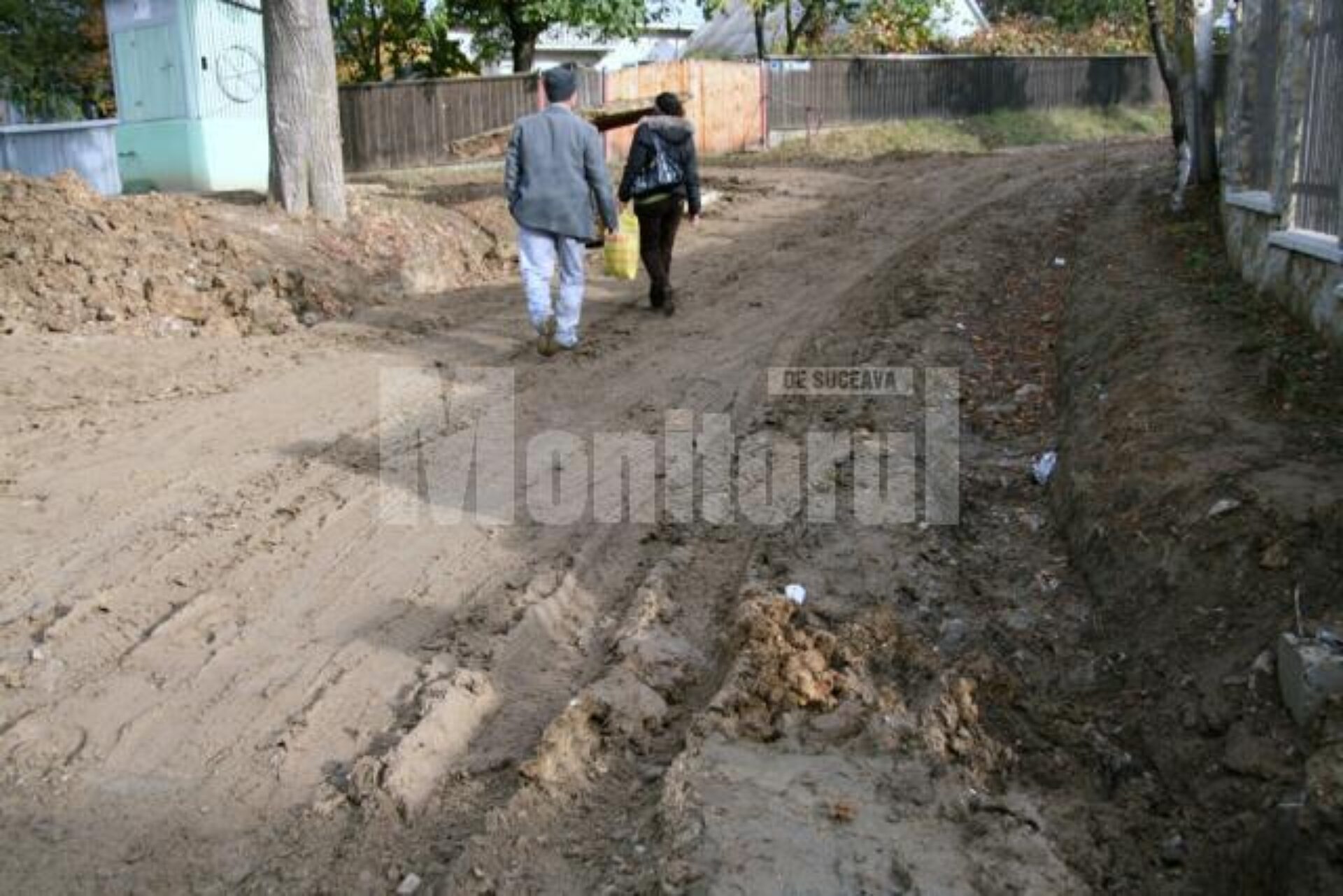 “Nu avem nimic cu primăria, că măcar a vrut să facă ceva pentru noi. Dar cei care muncesc aici își bat joc de noi. Mai repede se lucra pe vremuri, când aveau doar o sapă și un târnăcop, decât acum când au utilaje fel de fel”, spune un bărbat, amărât să tot vadă străzile făcute vraiște și copiii obligați să circule printre mașini, pentru că trotuarele drumului principal, singurul asfaltat, sunt pline de pământul scos din șanțuri, ori de mormane de nisip și pietriș.