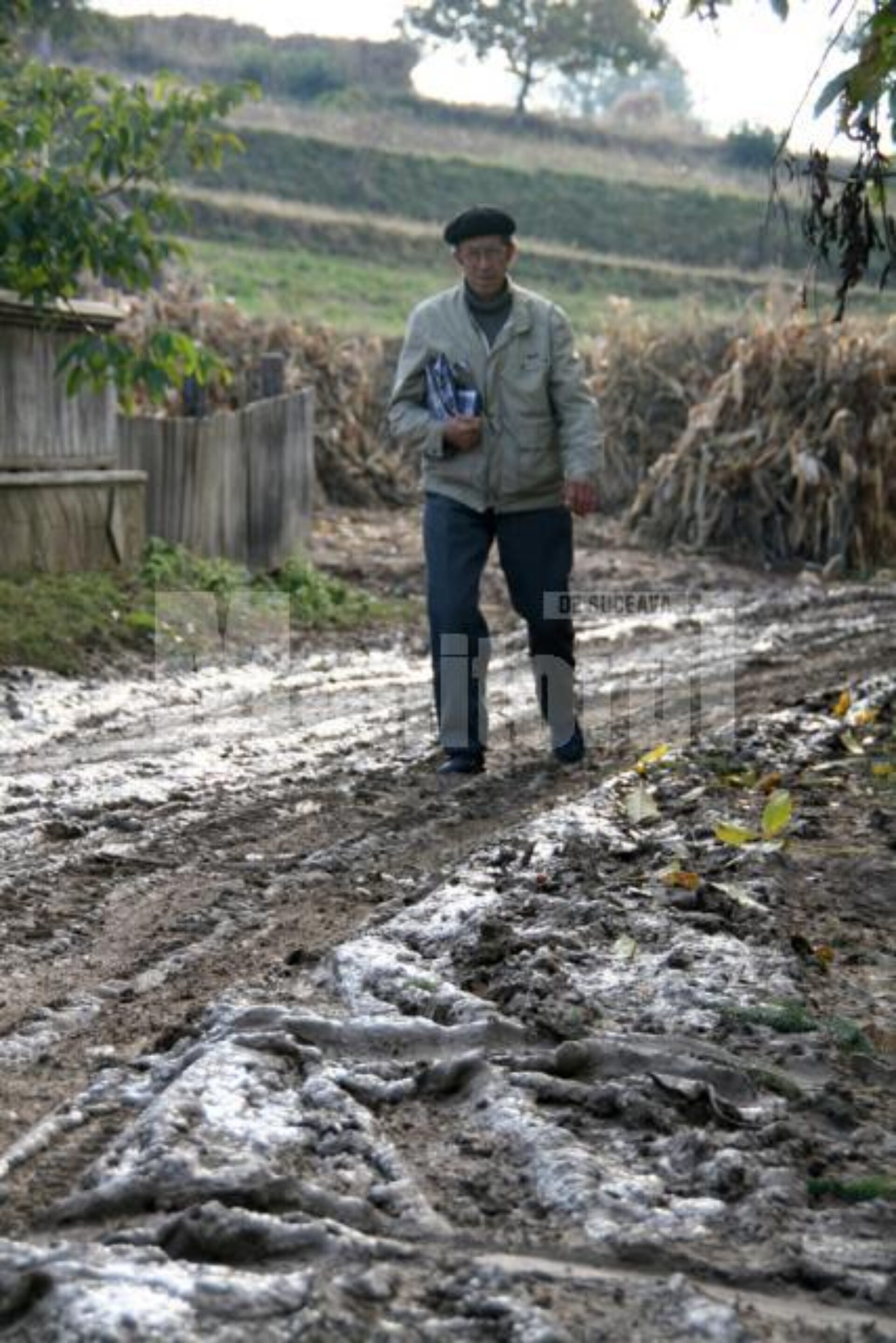 “Acum e bine, să fi văzut cum era acum câteva zile, când a plouat”, îmi spune din mers Ionel Murariu, care, după ani și ani de antrenament, se strecoară șerpește pe ulița plină de glod, ochind imediat locurile în care noroiul a fost tercit de călcătura altuia, de roata unei mașini sau de copita unui cal.