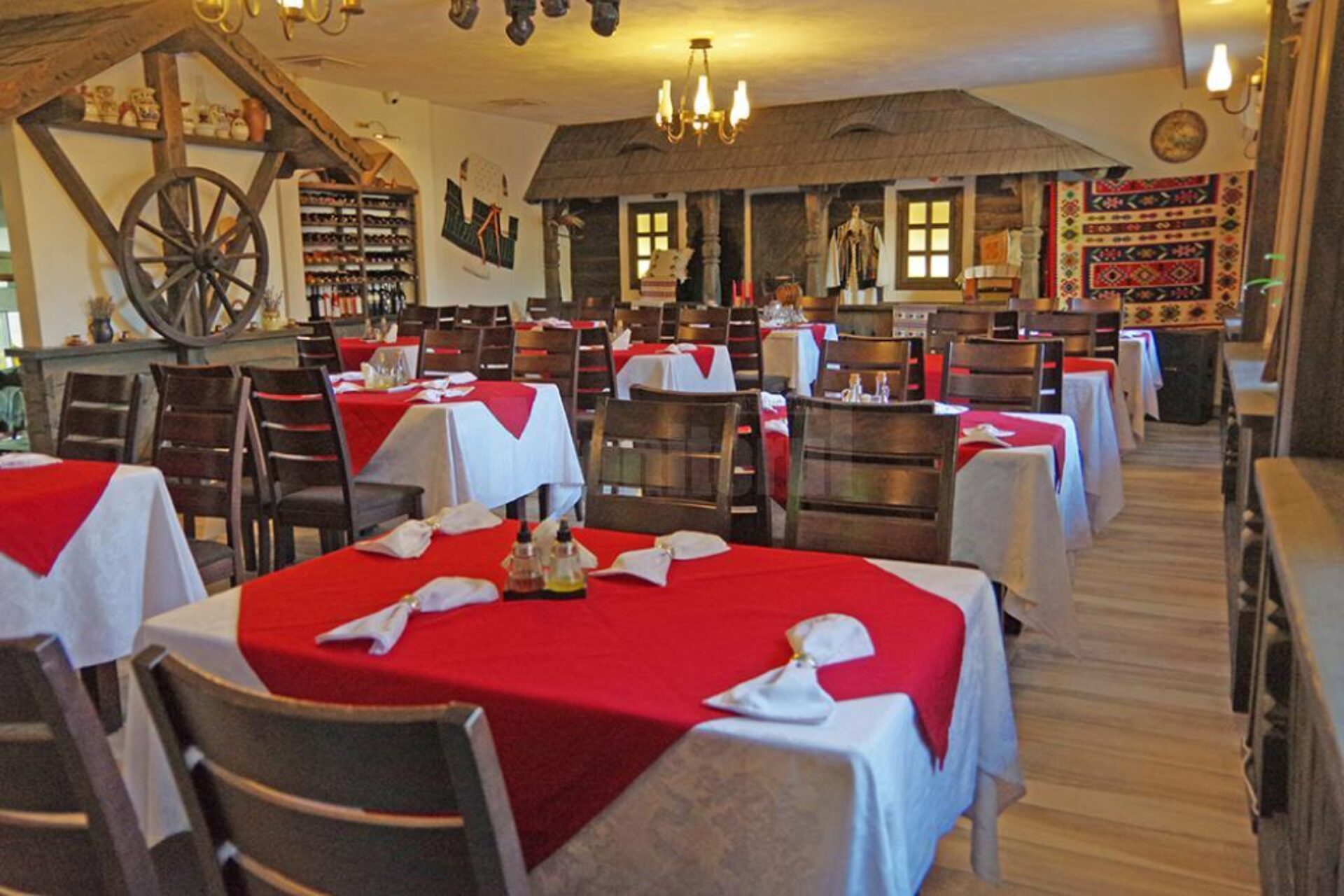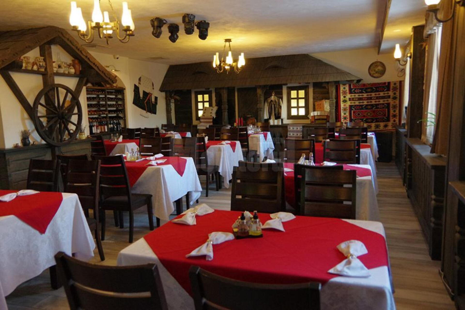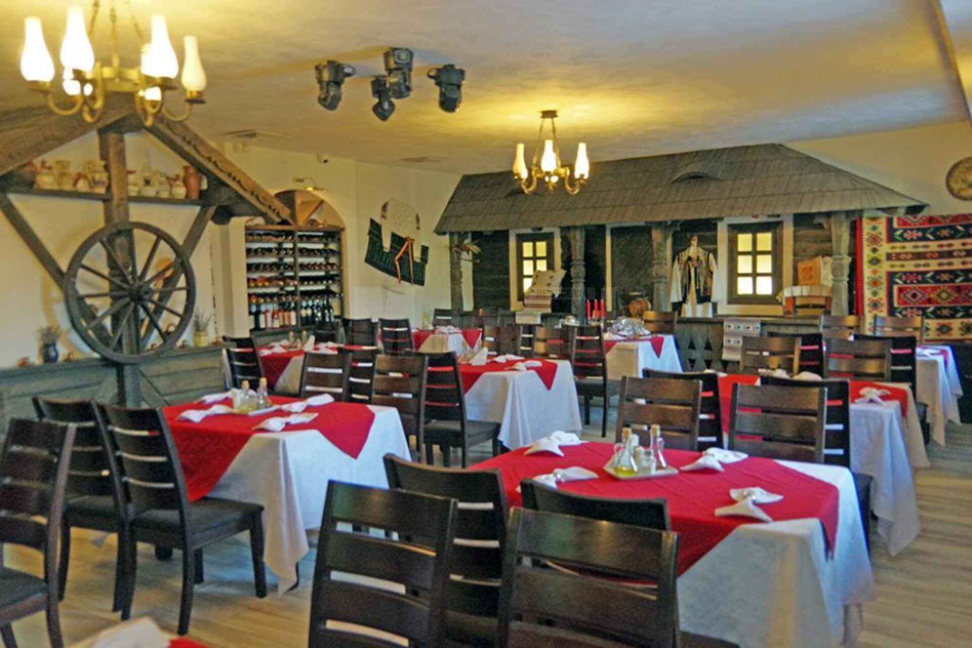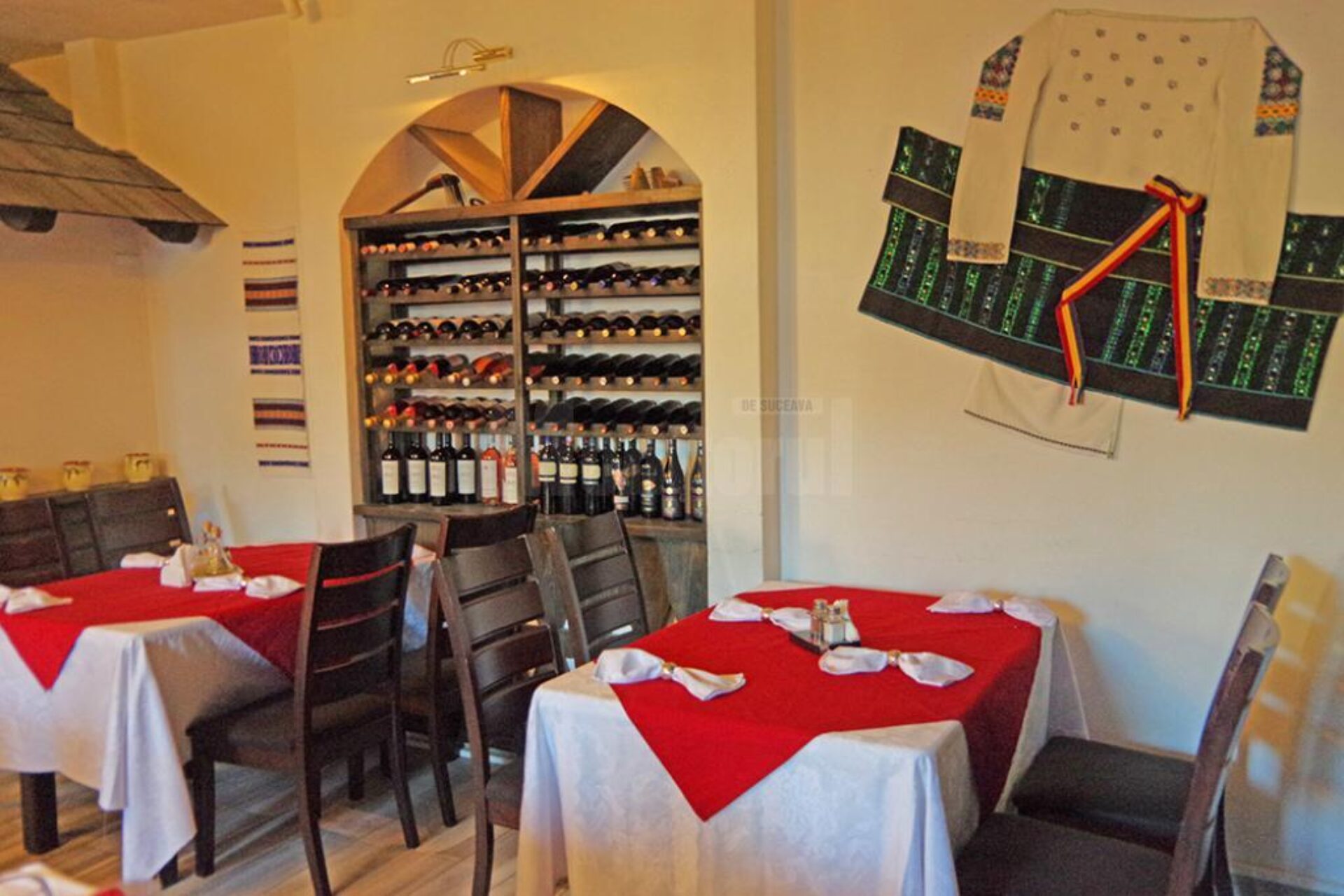 Salonul „Tradițional” al restaurantului are o arhitectură particulară. Înfățișează, în interior, o curte de gospodărie tradițională din zona Bucovinei. Oaspeții pot admira în timp ce servesc masa o fațadă de casă tradițională din Bucovina, o fântână din zona Moldovița și o poartă bucovineană tradițională. Toate aceste elemente aproape în mărime naturală au fost adaptate doar să încapă în salonul „Tradițional”. „În loc să prezentăm interiorul unei case din Bucovina, am realizat decorurile din sală în mărime naturală, astfel încât să reprezentăm o curte de casă tipică din Bucovina. Astfel am făcut pe un perete în interiorul restaurantului o bucată de casă tradițională care parcă e lipită de restaurant, acoperită cu draniță, cu cerdac în față și ferestre luminate. Fântâna tradițională din zona Moldovița practic ascunde accesul la bucătărie și, desigur, intrarea din hol spre salonul restaurantului se face pe sub o poartă tradițională. În față avem cerdac cu terasă acoperită cu draniță realizată manual la fața locului”, ne-a povestit Dorel Covașă.