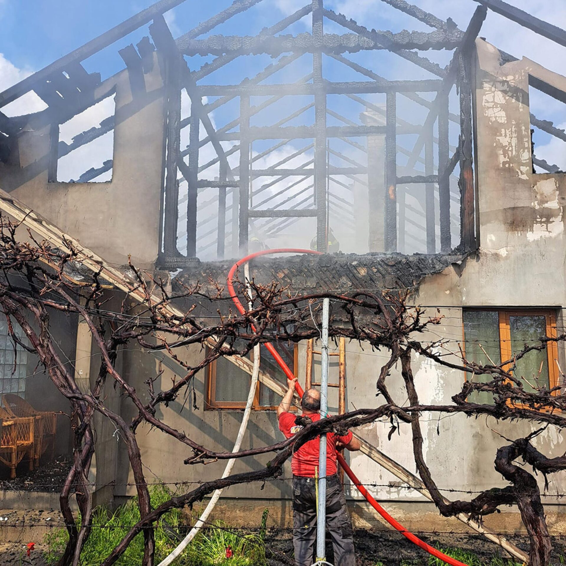 Flăcările s-au extins cu mare violență pe toată suprafața acoperișului iar casa a fost distrusă, din păcate, aproape în totalitate.