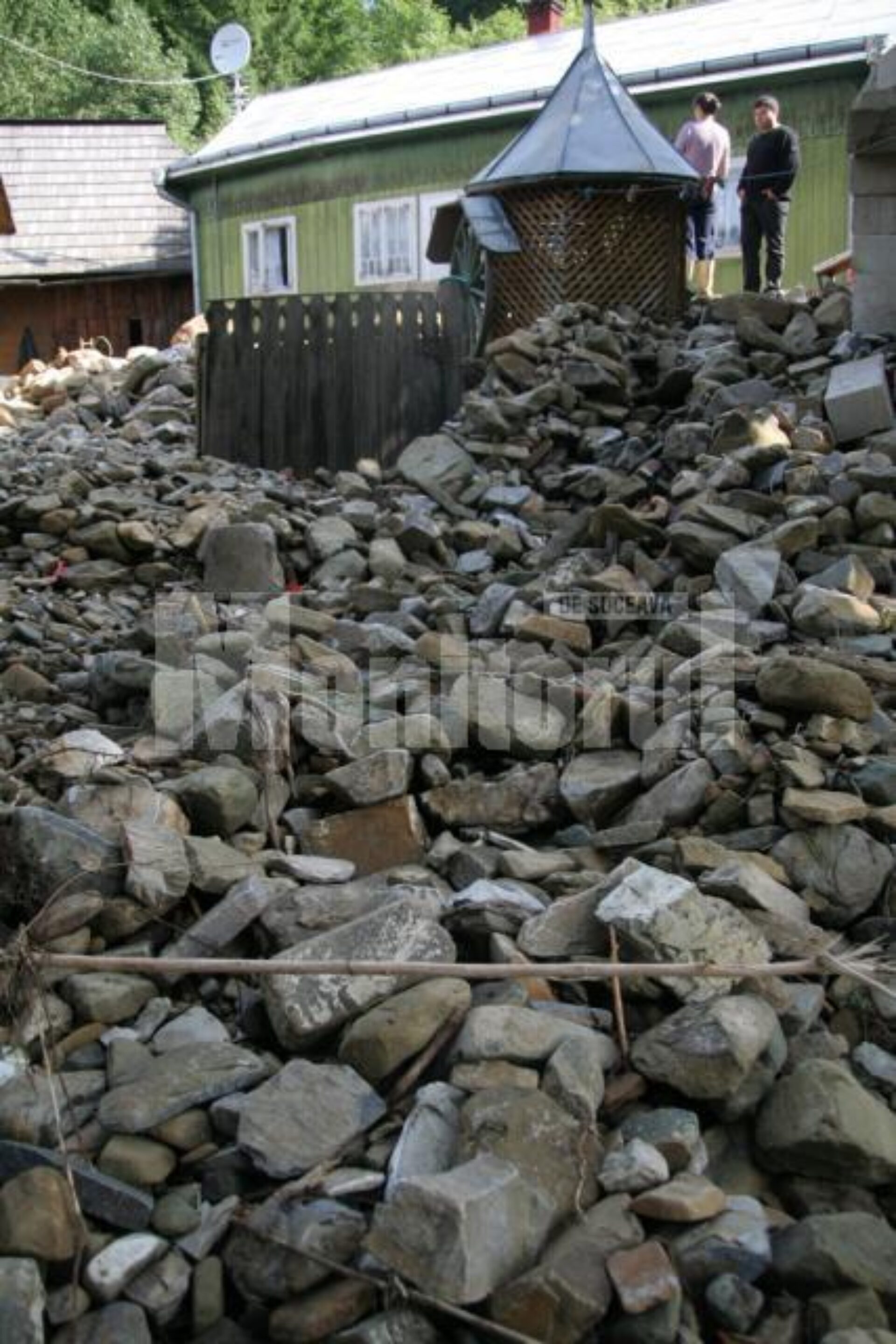 Casa unei familii din Straja a rămas în picioare ca prin minune după ce a fost bombardată pur și simplu cu tone de piatră mai bine de o oră. Pietrele au fost aduse din munte, de viitura de sâmbătă, iar unele cântăresc chiar și câteva zeci de kilograme.