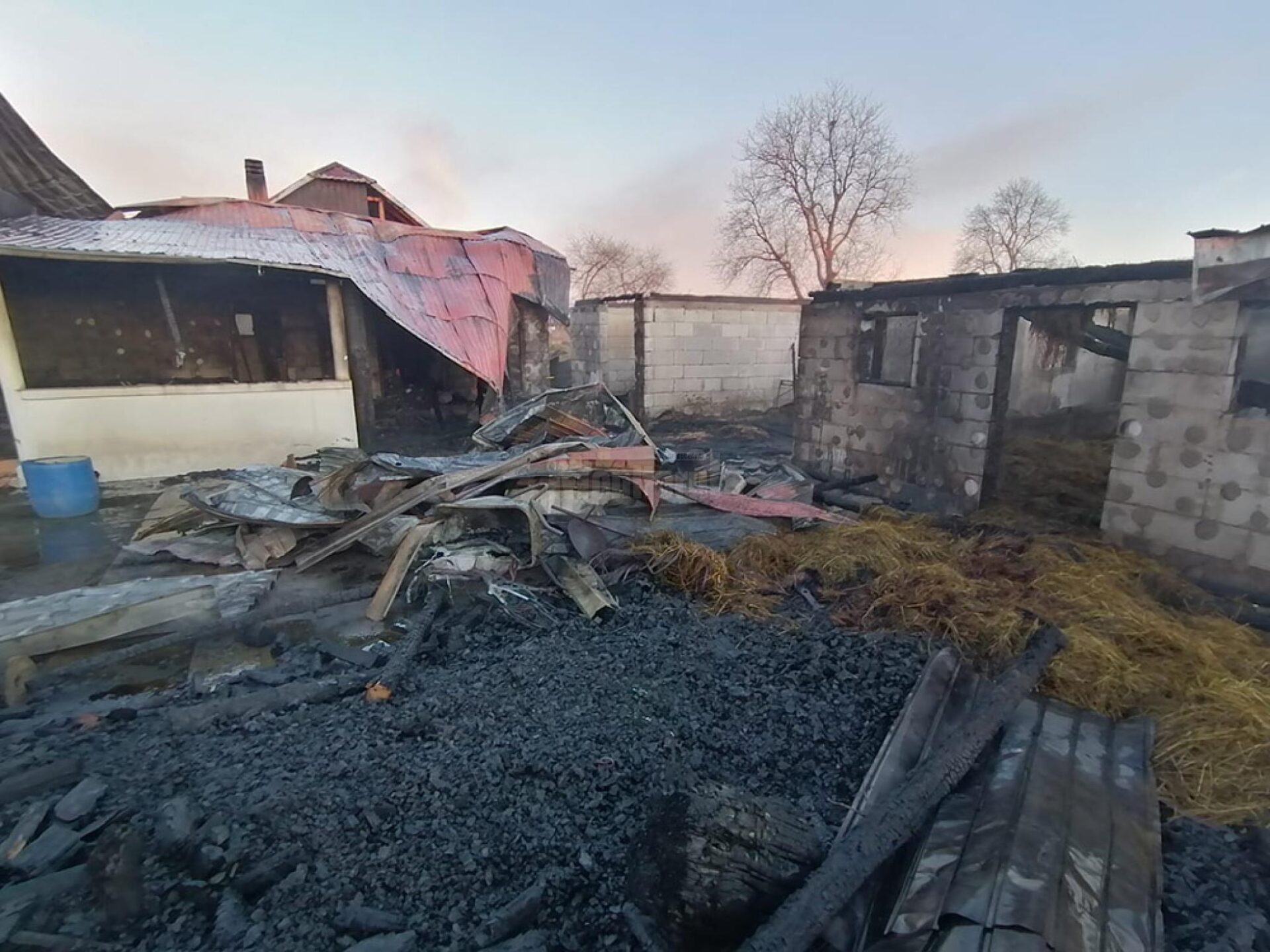 Anexele gospodărești, corp comun, au ars pe o suprafață totală de aproximativ 250 de metri pătrați, cu tot cu bunurile din interiorul acestora (3 metri cubi lemn de foc, 3 tone cereale, elemente de tâmplărie, electrocasnice și altele). După cum se vede și în fotografie, în cazul casei a ars acoperișul, în rest fiind salvată.