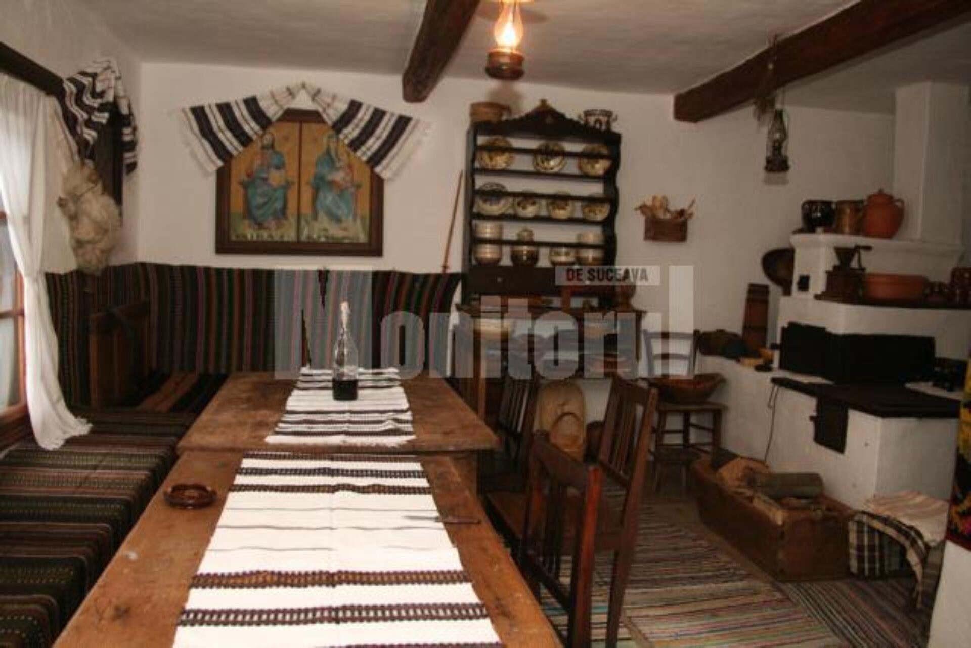 Casa din Mănăstirea Humorului, în care proprietarul stă trei, patru zile pe săptămână, are doar obiecte tradiționale: vase vechi, blidar, farfurii, lămpi, icoane, trăistuțe, pătuț pentru copii, obiecte de decor, o Biblie foarte veche, un ceas și multe alte elemente valoroase.
