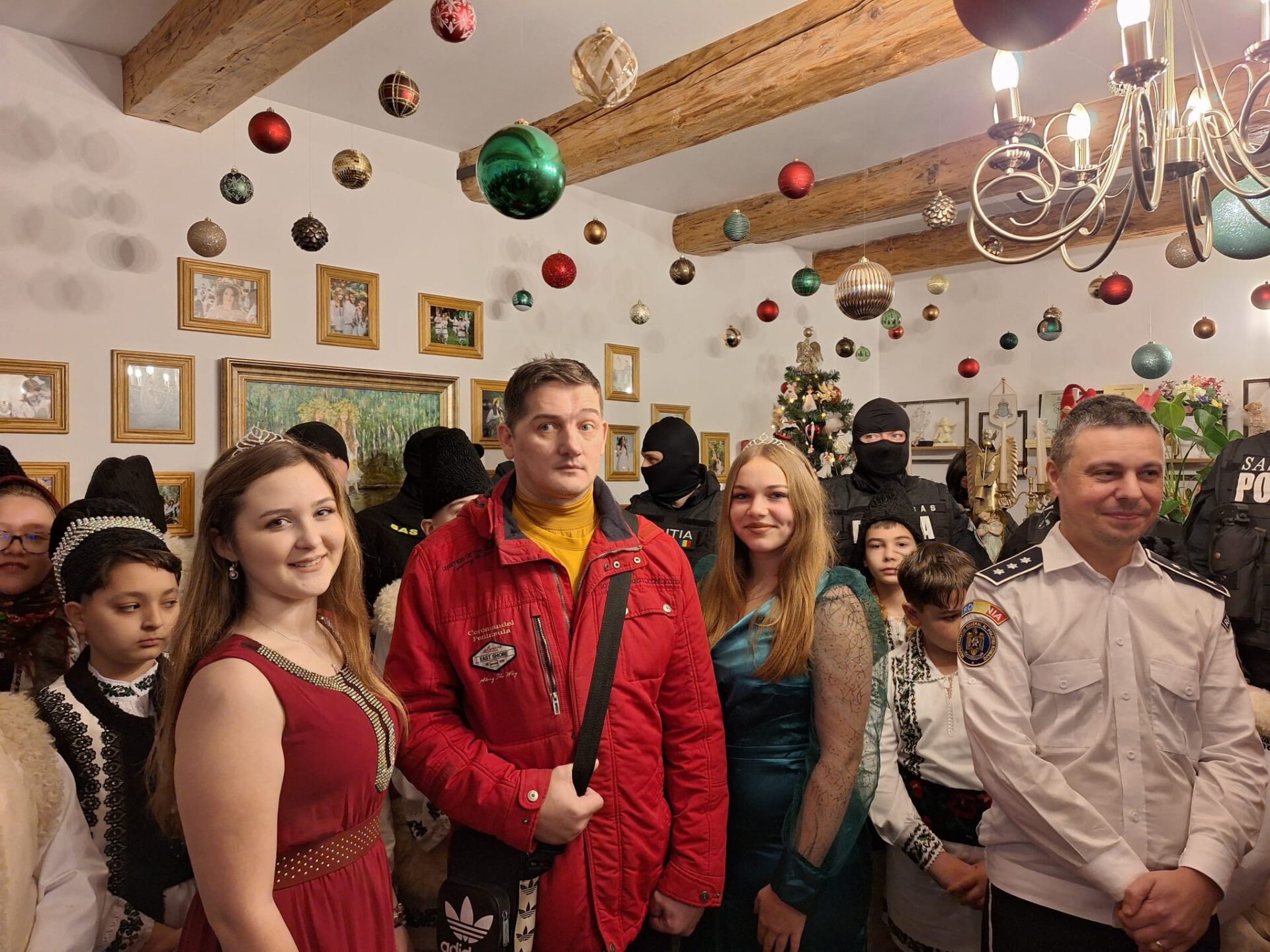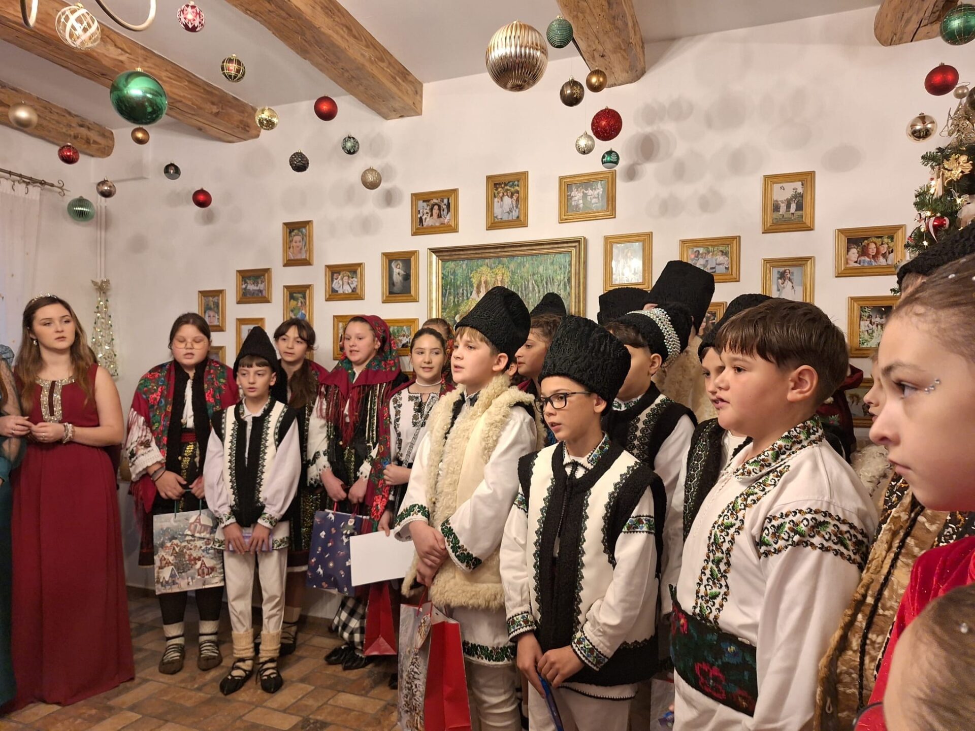 S-au cântat colinde („mulțumiri Ioana Filip, mulțumiri clasa a V-a B, Școala Gimnazială Cajvana și prof. Savu Vasile”), s-a recitat și s-au împărțit daruri.