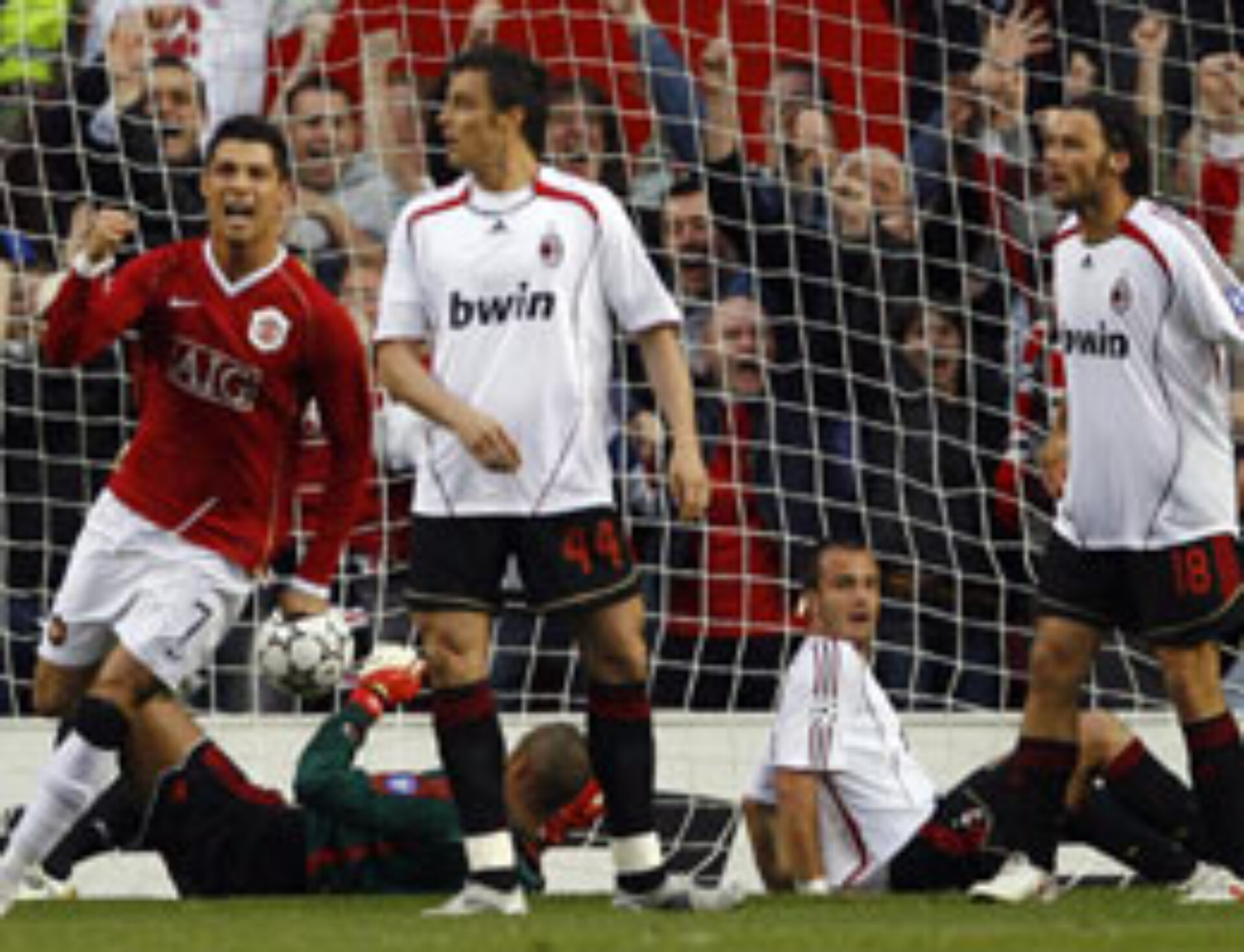 Echipa Manchester United a învins, cu scorul de 3-2 (1-2), formația AC Milan, în meciul disputat, marți, pe stadionul Old Trafford, în prima manșă a semifinalelor Ligii Campionilor. Pentru Manchester United au marcat Cristiano Ronaldo ’5 și Wayne Rooney ’59, ’90+1, în timp ce golurile formației AC Milan au fost înscrise de Kaka ’22 și ’37. În retur, jucătorul echipei Manchester, Patrice Evra, va fi suspendat din cauza cumului de cartonașe.La AC Milan, Paolo Maldini a jucat meciul cu numărul 104 în Liga Campionilor. Meciul retur dintre AC Milan și Manchester United va avea loc, miercuri, 2 mai, pe San Siro, învingătoarea dublei manșe urmând să fie considerată, din motive administrative, echipa gazdă la finala din 23 mai, care va avea loc pe stadionul Olimpic din Atena. Antrenorul echipei Manchester United, Alex Ferguson, a declarat că echipa sa reușit o performanță „minunată” în partida cu AC Milan și a precizat că jocul prestat dovedește că formația engleză are puterea de a câștiga competiția. „A fost o performanță minunată a echipei mele, deși au fost momente când Milan a jucat un fotbal de înaltă clasă. A fost ciudat pentru un joc așa de bun să se înscrie goluri urâte, am primit două goluri groaznice. La 1-2 în fața unei echipe de asemenea nivel e foarte greu. Le-am spus la pauză că dacă continuăm să jucăm cu aceeași viteză, avem șanse. A fost un moment în repriza a doua când am fost prinși descoperiți de două ori, iar Kaka ar fi putut marca. În astfel de jocuri ai nevoie de puțin noroc. Apoi, noi am fost echipa mai bună, cel de-al doilea gol ne-a dat elan și apoi trebuia să fie un singur învingător. Golul lui Rooney ne pune într-o postură fantastică. Cred că, având în vedere viteza noastră de joc, vom marca și în deplasare, dar nu știu dacă va fi suficient. Știu că va fi dificil, dar suntem încrezători, și Milan știe că va avea o partidă extrem de grea”, a spus tehnicianul englez. Antrenorul echipei AC Milan, Carlo Ancelotti, a declarat că un rezultat de egalitate ar fi fost mai just, informează cotidianul Gazzetta dello Sport. „Am fost extrem de naivi și am scăpat printre degete victoria. Șansele de calificare au rămas intacte și sper să-l putem recupera pe Gattuso pentru meciul retur”, a spus Ancelotti.