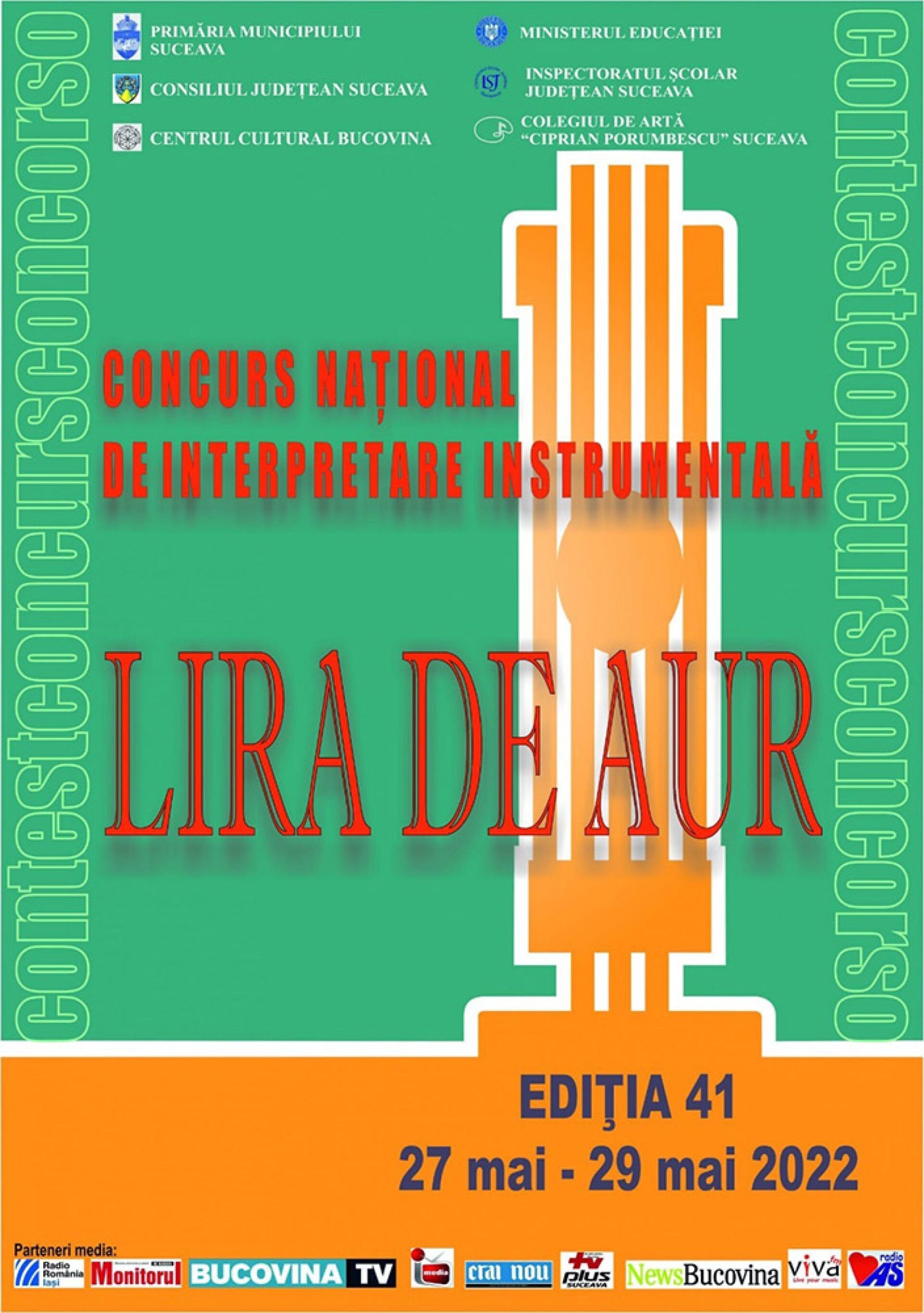 Cea mai longevivă competiție de interpretare instrumentală din România, ”Lira de Aur”, se va desfășura la Suceava, la finalul acestei săptămâni, începând cu vineri, 27 mai, și până duminică, 29 mai. Concursul a reprezentat de-a lungul timpului, începând cu anul 1972, o rampă de lansare a tinerilor interpreți, devenind un punct de reper în palmaresul viitorilor muzicieni. Cu o istorie pe cât de lungă, pe atât de bogată, întreruptă în două rânduri și, mai apoi, în anii pandemiei, concursul se adresează tinerilor interpreți din țară și din străinătate aparținând învățământului artistic preuniversitar de stat sau particular.
