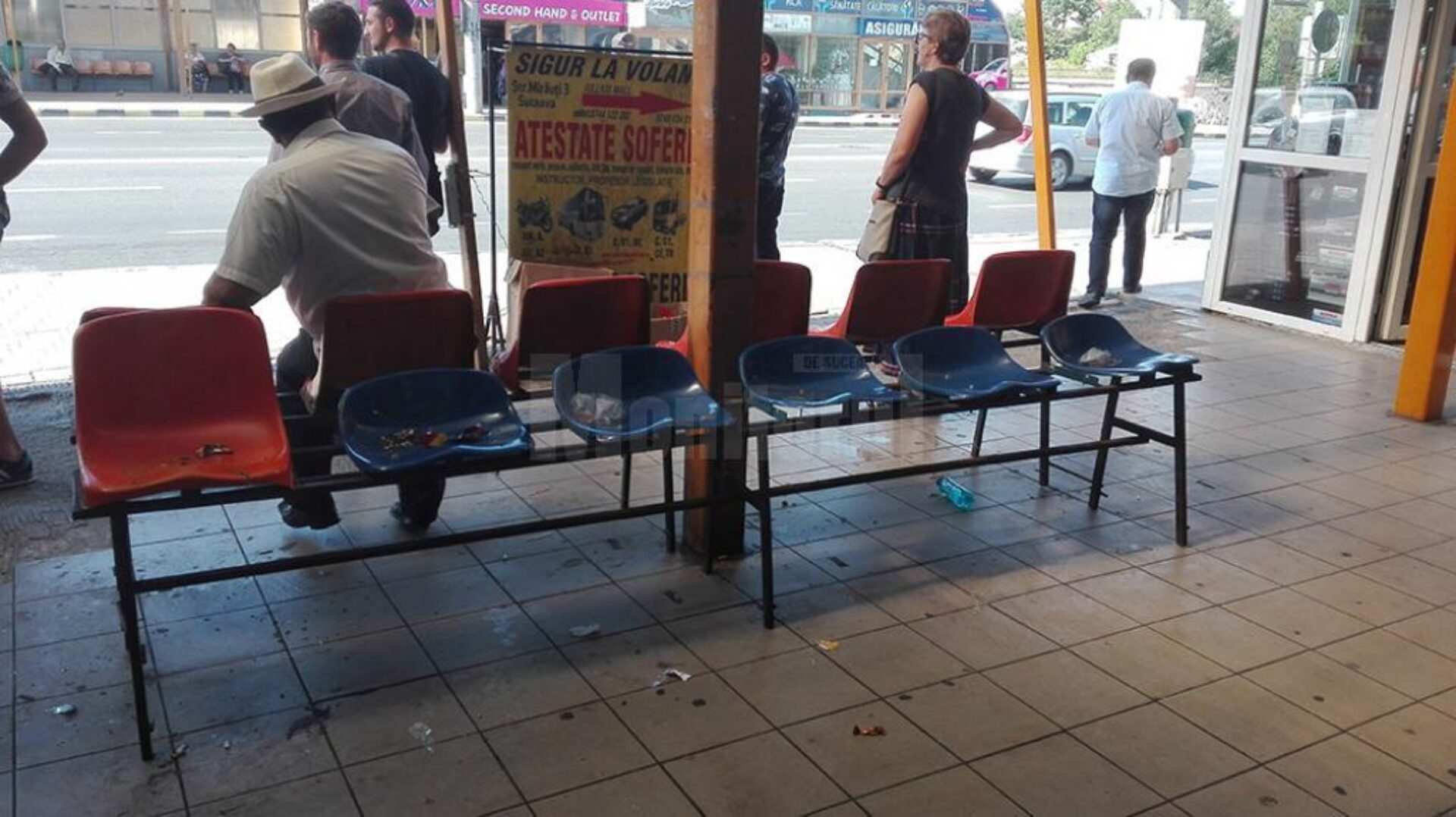 Una dintre cele mai utilizate stații de așteptare pentru transportul public din municipiul Suceava, stația Centru, de pe partea unde se merge spre Burdujeni, este zi de zi transformată într-un fel de buncăr de gunoi, mulți dintre cei care vin să aștepte acolo un mijloc de transport sau doar își pierd timpul pe acolo, în grupuri, lăsând în urmă cantități impresionante de gunoi – pe jos și pe scaunele de așteptare. Periodic, băncuțele de așteptare sunt distruse, din teribilism sau din cauza folosirii lor neadecvate.