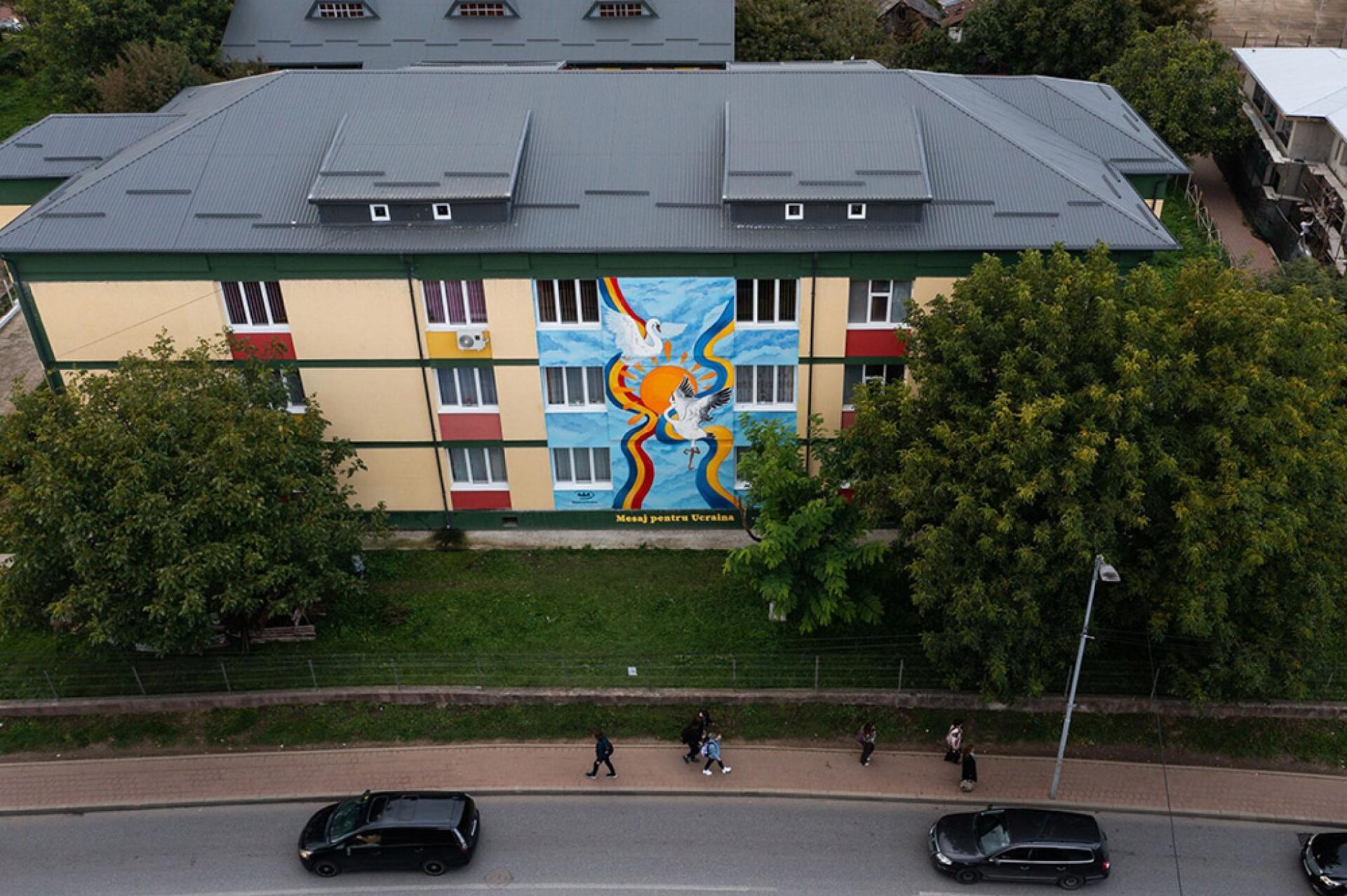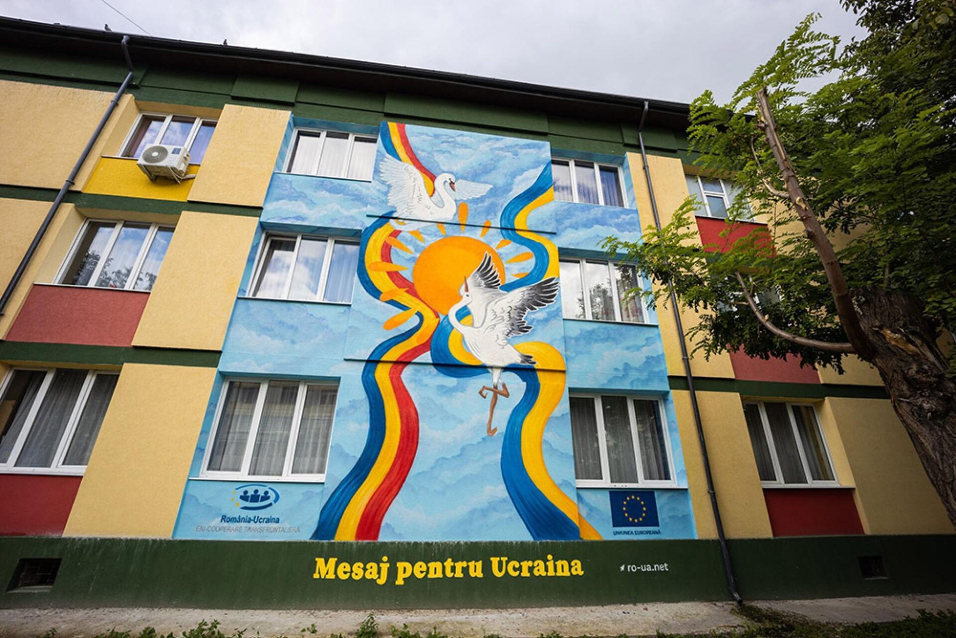 „Inițiativa noastră din 2022 – «Mesaj pentru Ucraina» – este un eveniment-manifest dedicat Ucrainei și poporului ucrainean greu încercat de conflictul neprovocat și nejustificat prin care trece, cu scopul de a transmite un mesaj de solidaritate într-un format inedit, prin artă murală contemporană. Alegerea locației de realizare a picturii murale a venit în mod natural, în contextul Anului European al Tineretului”, a precizat Anca Gutt, reprezentantă a Biroului Regional pentru Cooperare Transfrontalieră Suceava.