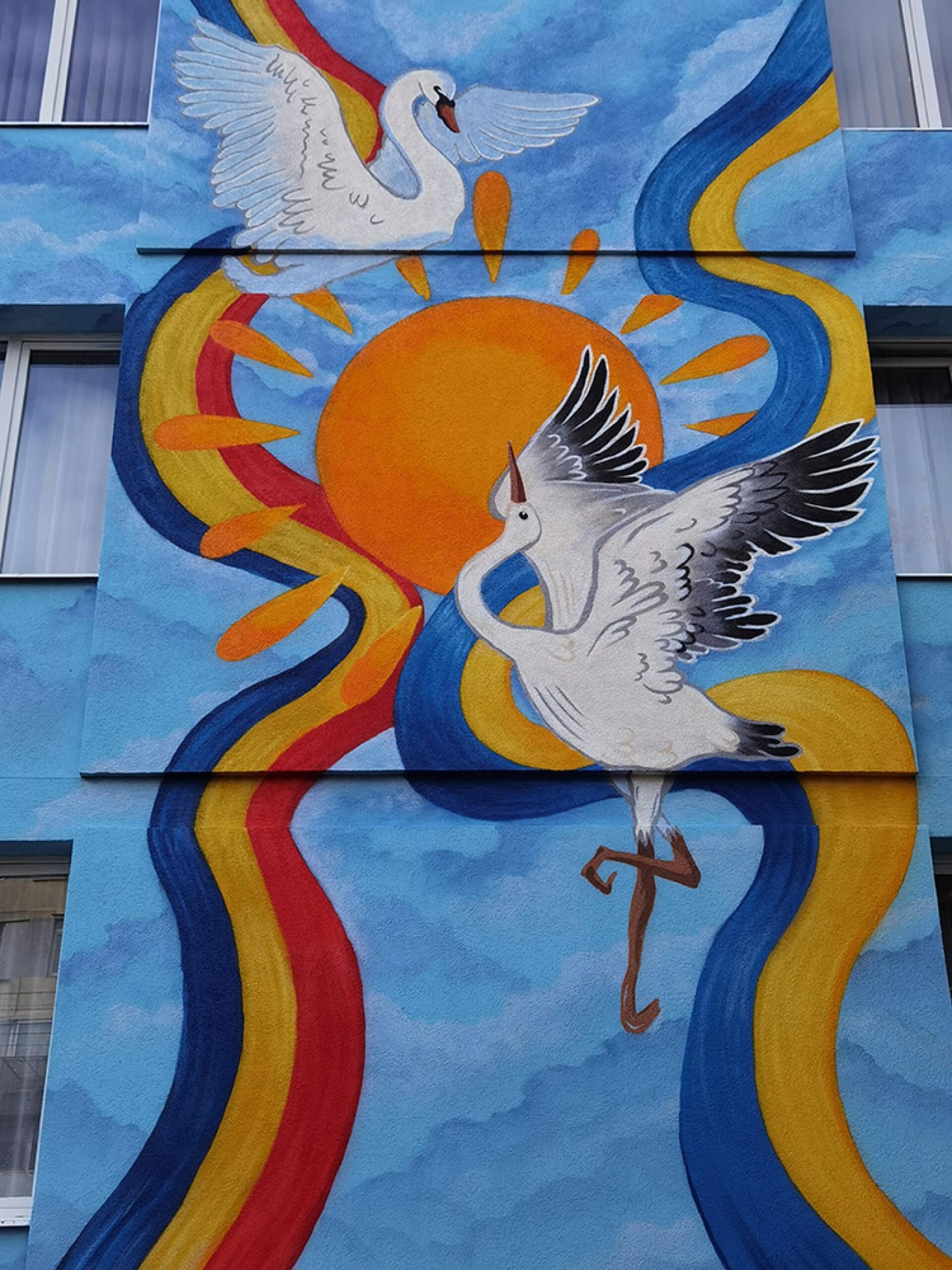 “Păsările voinței și ale libertății” – cea mai mare lucrare de artă murală contemporană din municipiul Suceava, dar și din județ, care acoperă o bună parte din fațada unei clădiri publice cu trei niveluri, a fost inaugurată oficial, printr-un eveniment-manifest „Mesaj pentru Ucraina”.