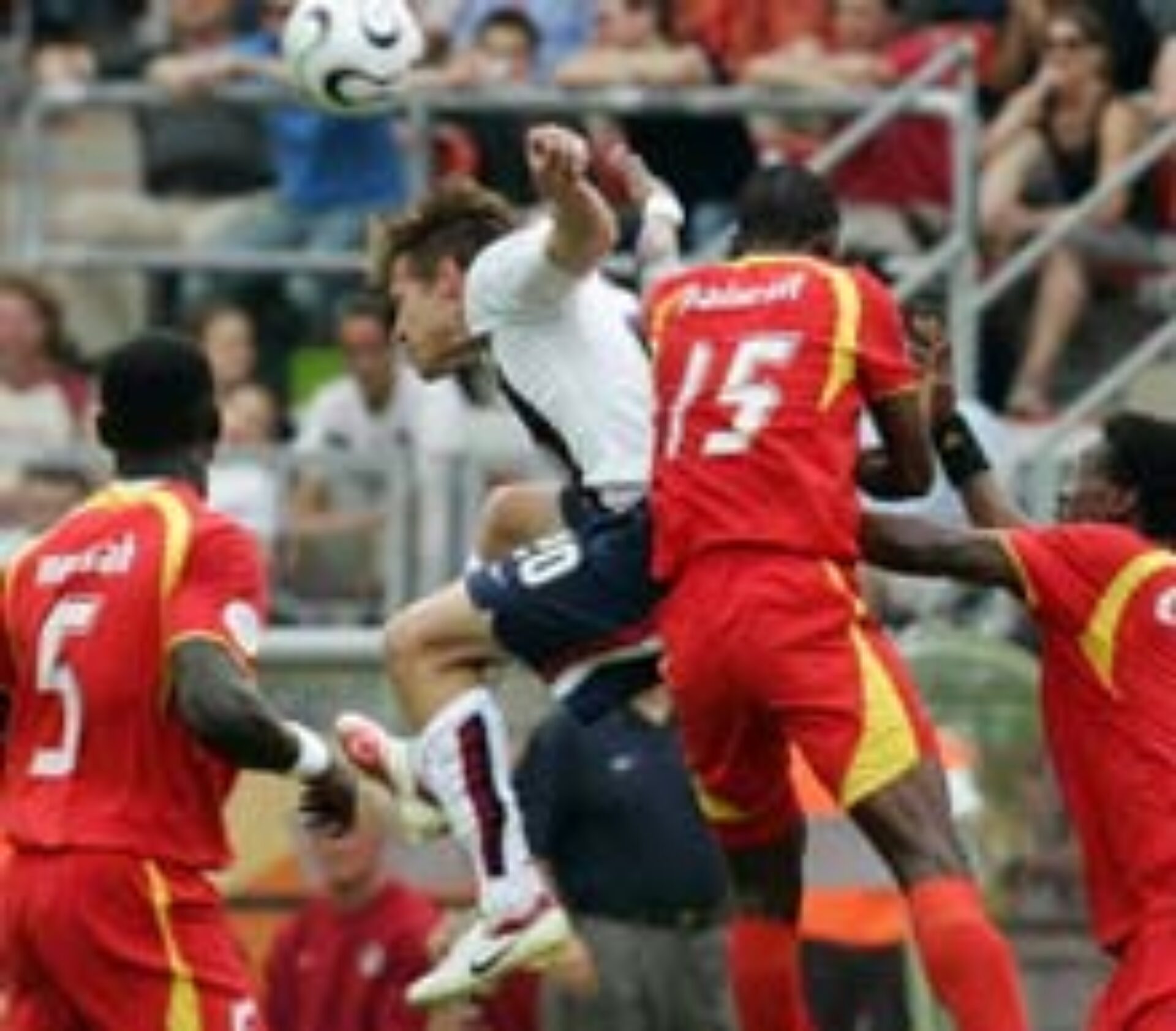 Reprezentativa Ghanei a învins, cu scorul de 2-1, formația Statelor Unite ale Americii și s-a calificat în optimile de finală, fiind prima și, probabil, singura reprezentantă a Africii care reușește această performanță la actuala ediție a Cupei Mondiale. La începutul turneului final, grupa C, din care făceau parte Argentina, Olanda, Coasta de Fildeș și Serbia-Muntenegru, a fost denumită „grupa morții”. Înaintea ultimei etape, această titulatură a fost folosită pentru grupa E. Meciul de la Nurnberg aducea față în față echipele Ghanei și Statelor Unite ale Americii, ambele formații având nevoie de victorie pentru a accede în faza următoare. Totuși, ghanezii aveau și șansa unui rezultat de egalitate în cazul în care Cehia era învinsă de Italia. Partida a început prost pentru vedeta „Stelelor Negre”, Michael Essien, care a primit un cartonaș galben, al doilea de la acest turneu, și va absenta în optimile de finală. Aflați la prima participare la o Cupă Mondială, elevii lui Ratomir Dujkovici s-au instalat în jumătatea de teren a americanilor având o posesie superioară a balonului. Pe fondul dominării teritoriale, ghanezii au reușit deschiderea scorului în minutul 22. Fundașul stânga Draman a recuperat o minge din picioarele lui Reyna la 25 de metri de poarta americană, a scăpat singur și l-a executat cu un șut plasat pe portarul Keller. După primirea golului, yankeii au început să preseze în ofensivă și eforturile le-au fost răsplătite în minutul 43, atunci când Beasley a centrat la întâlnire pentru Dempsey, care a reluat în plasă cu un șut în forță, readucând egalitatea pe tabela de marcaj, 1-1.Bucuria elevilor lui Bruce Arena n-a durat foarte mult, deoarece arbitrul german Markus Merk a dictat penalti pentru Ghana la un duel între Pimpong și Oniewu, la care doar el a văzut infracțiunea. Căpitanul Appiah a transformat impecabil lovitura de pedeapsă și africanii au plecat în avantaj la cabine.