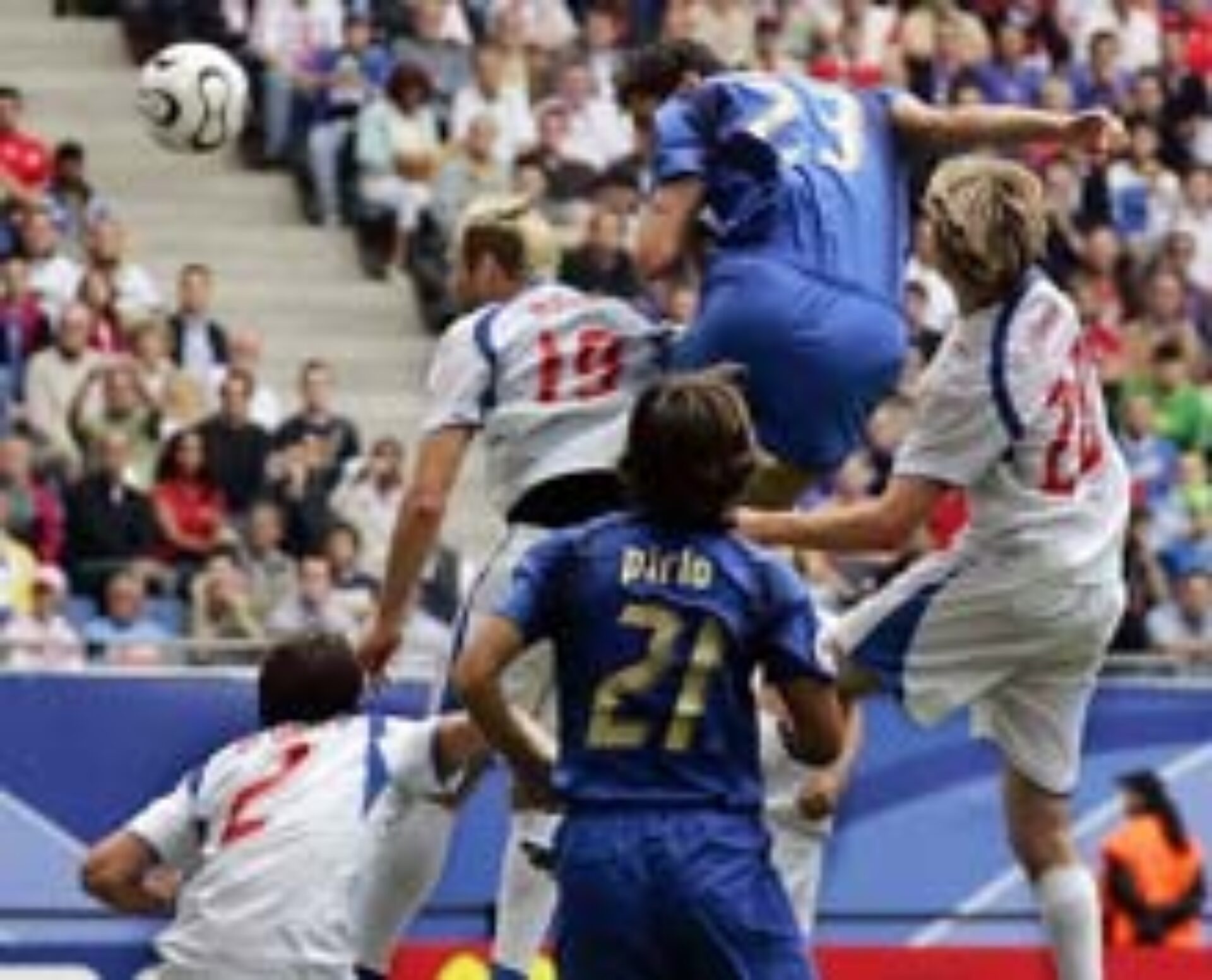 Singura grupă de la acest turneu final al Cupei Mondiale în care oricare dintre cele patru echipe putea obține sau pierde calificarea în optimi și-a programat, joi, ultimele meciuri la Hamburg (Cehia – Italia) și la Nurnberg (Ghana – SUA). Meciul de la Hamburg a început în ușoara notă de dominare a foștilor adversari ai României din preliminariile CM. Milan Baros a avut prima ocazie în minutul 8, când în urma unei centrări a lui Nedved, nu a putut să-l învingă pe Buffon din șase metri. În minutul 16, jucătorul lui Juventus Torino, Pavel Nedved, a șutat de la 17 metri, Buffon a respins în lateral, mingea a ajuns la Jankulovski, dar același Buffon a intervenit salvator. În această fază, fundașul Alessandro Nesta s-a accidentat la piciorul drept, iar în minutul 17 tehnicianul italienilor, Marcelo Lippi, a fost nevoit să facă schimbarea pe care nu și-a dorit-o niciodată. Nesta, despre care spunea că este singurul jucător din „squadra azzura” pentru care nu are înlocuitor, i-a lăsat locul lui Materazzi. Sistemul de joc al italienilor, în faza defensivă, a suferit modificări, căpitanul Cannavaro preluând sarcinile lui Nesta, iar Materazzi devenind fundaș central stânga. Tot răul s-a dovedit a fi spre bine, când Materazzi a marcat pentru 1-0 în minutul 26. Fundașul lui Inter, care în final a fost desemnat cel mai bun jucător al întâlnirii, a urcat în careul cehilor la o lovitură de colț și, după ce l-a depășit în aer pe Polak, a reluat cu capul de la 9 metri în colțul din dreapta porții apărate de Petr Cech. Polak s-a dovedit a fi „omul negru” al cehilor în această partidă, după ce a primit două cartonașe galbene în decurs de 11 minute și astfel soarta foștilor colegi de grupă ai tricolorilor în campania pentru Mondial părea pecetluită. În a doua repriză, Bruckner a forțat atacul, scoțând un mijlocaș, Poborsky, și introducând un atacant, Stajner.Intrarea pe teren în minutul 60 a golgheterului echipei AC Milan, Filippo Inzaghi, a menținut un „ghimpe” în apărarea cehilor, care nu au mai putut pune în pericol poarta lui Buffon decât prin șuturile de la semidistanță ale lui Nedved. Antrenorul cehilor, Karel Bruckner, a dat senzația că acceptă înfrângerea în minutul 64 când l-a scos de pe teren pe atacantul Milan Baros și l-a introdus pe mijlocașul David Jarolim. Tot ce a mai putut să facă bătrânul antrenor al cehilor în finalul acestui meci a fost să-i ofere șansa fiului său nelegitim, Marek Heinz, să bifeze singurele 12 minute de la acest turneu final. Cehii au fost siguri că vor pleca acasă în minutul 87, când Inzaghi, plecat din propria jumătate de teren, a scăpat singur pe contraatac, l-a driblat pe Cech și a înscris de la opt metri în poarta goală. Reprezentativa Cehiei, deși era cotată la începutul turneului printre favoritele la câștigarea trofeului mondial, a început turneul în forță, cu o victorie categorică asupra Statelor Unite ale Americii, scor 3-0, dar l-a încheiat în genunchi după două înfrângeri simetrice, scor 0-2, cu Ghana și Italia.