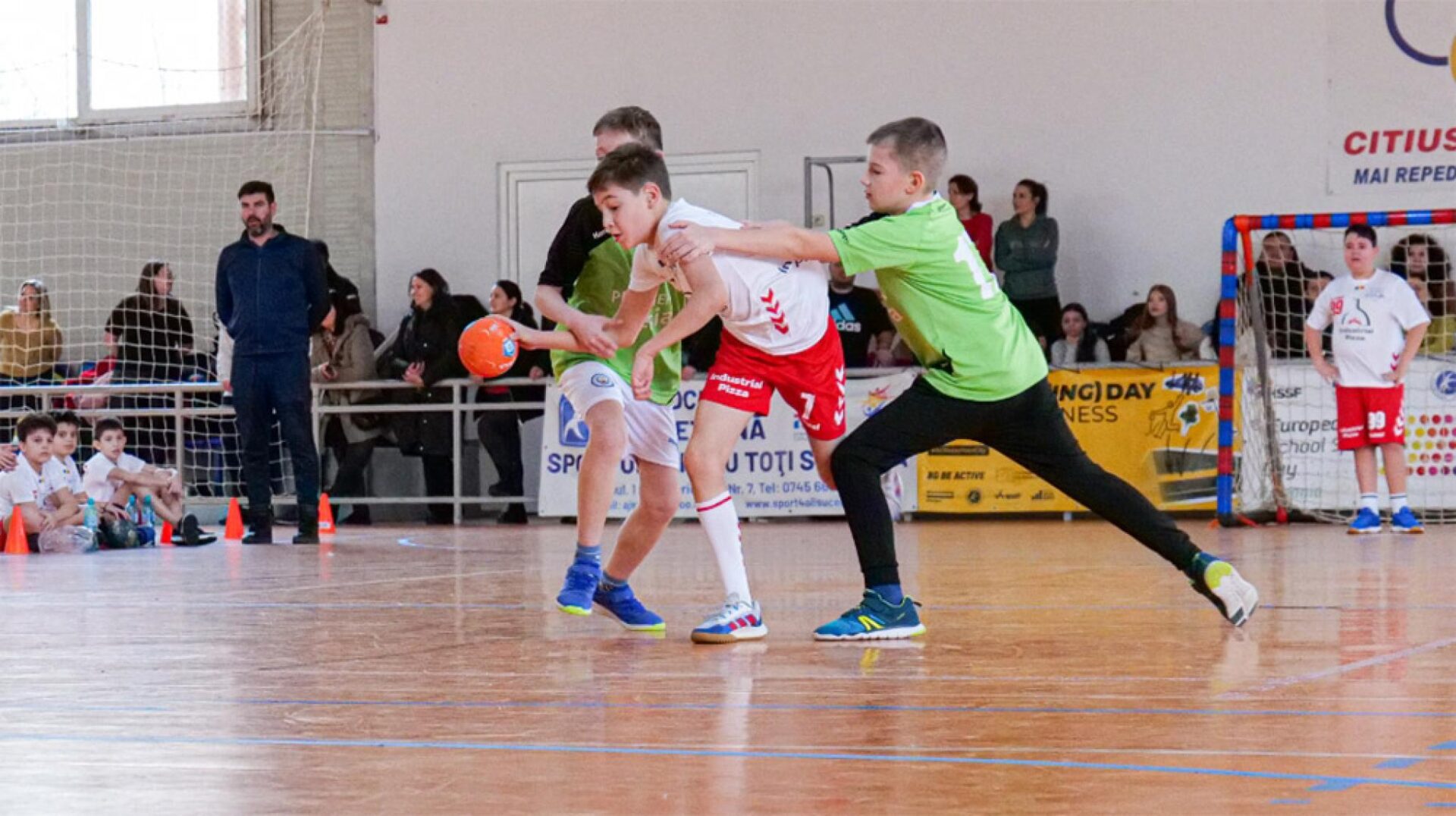 Sala de sport a Școlii Gimnaziale „Ion Creangă” din cartierul Obcini a fost plină de agitație la sfârșitul săptămânii trecute, cu prilejul primei ediții a Cupei „Dream Team” la handbal pentru copii. Peste o sută de mici handbaliști de la cluburile CSU Suceava, LPS Suceava și ACS Dream Team Suceava au răspuns chemării antrenorului Adrian Chiruț, inițiatorul competiției, majoritatea venind la teren însoțiți de părinți, care i-au încurajat cu sportivitate pe durata meciurilor.