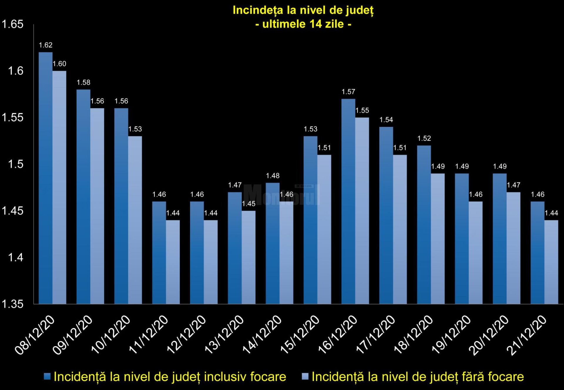 Conform distribuției cazurilor Covid-19 pe unități administrativ-teritoriale, din cele 114 unități administrativ-teritoriale 14 nu au niciun caz de infecție Covid-19 în evoluție, 17 au câte un caz înevoluție, 36 au sub cinci cazuri în evoluție, 28 au sub zece cazuri în evoluție, iar 19 au peste zece cazuri în evoluție.
