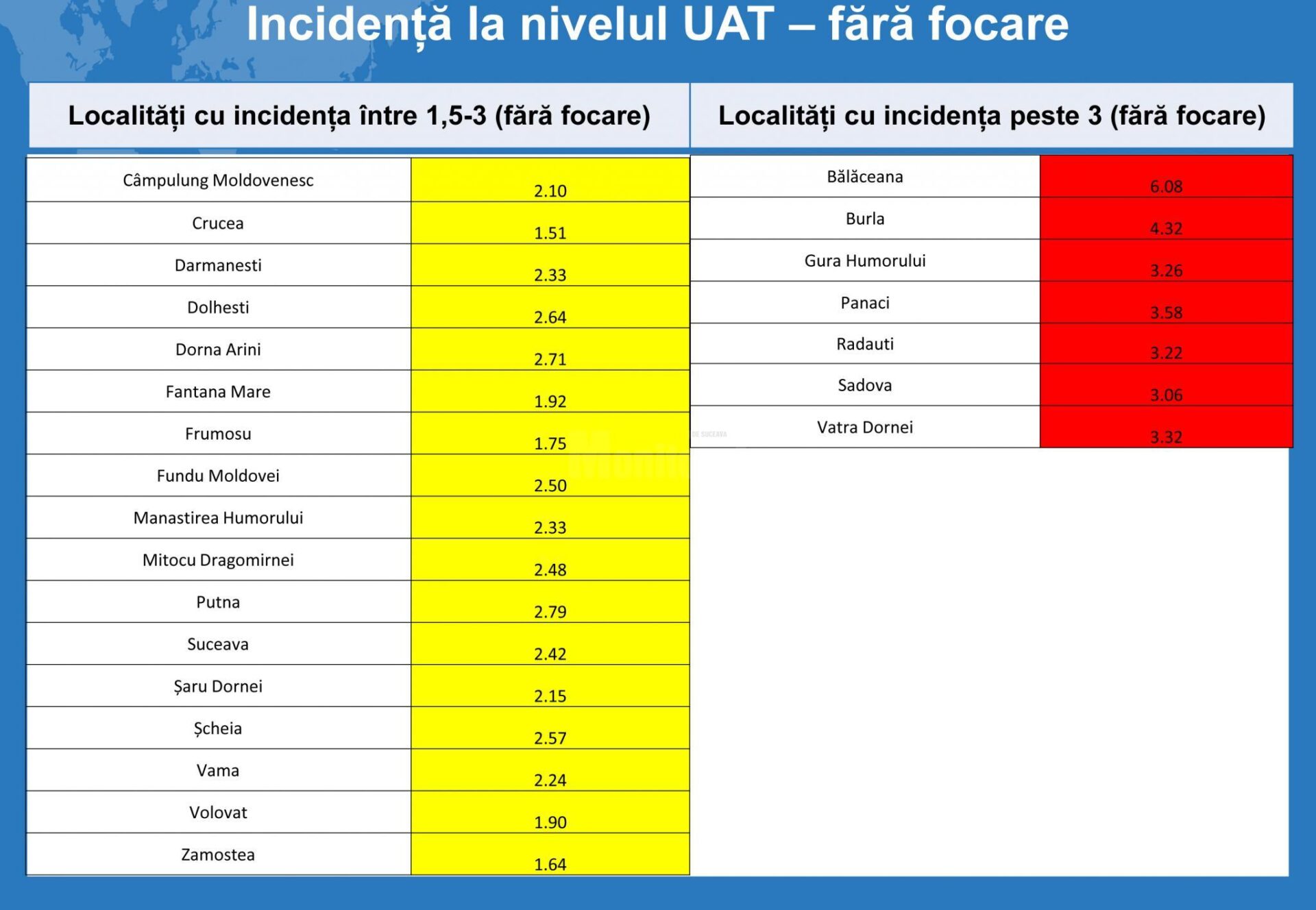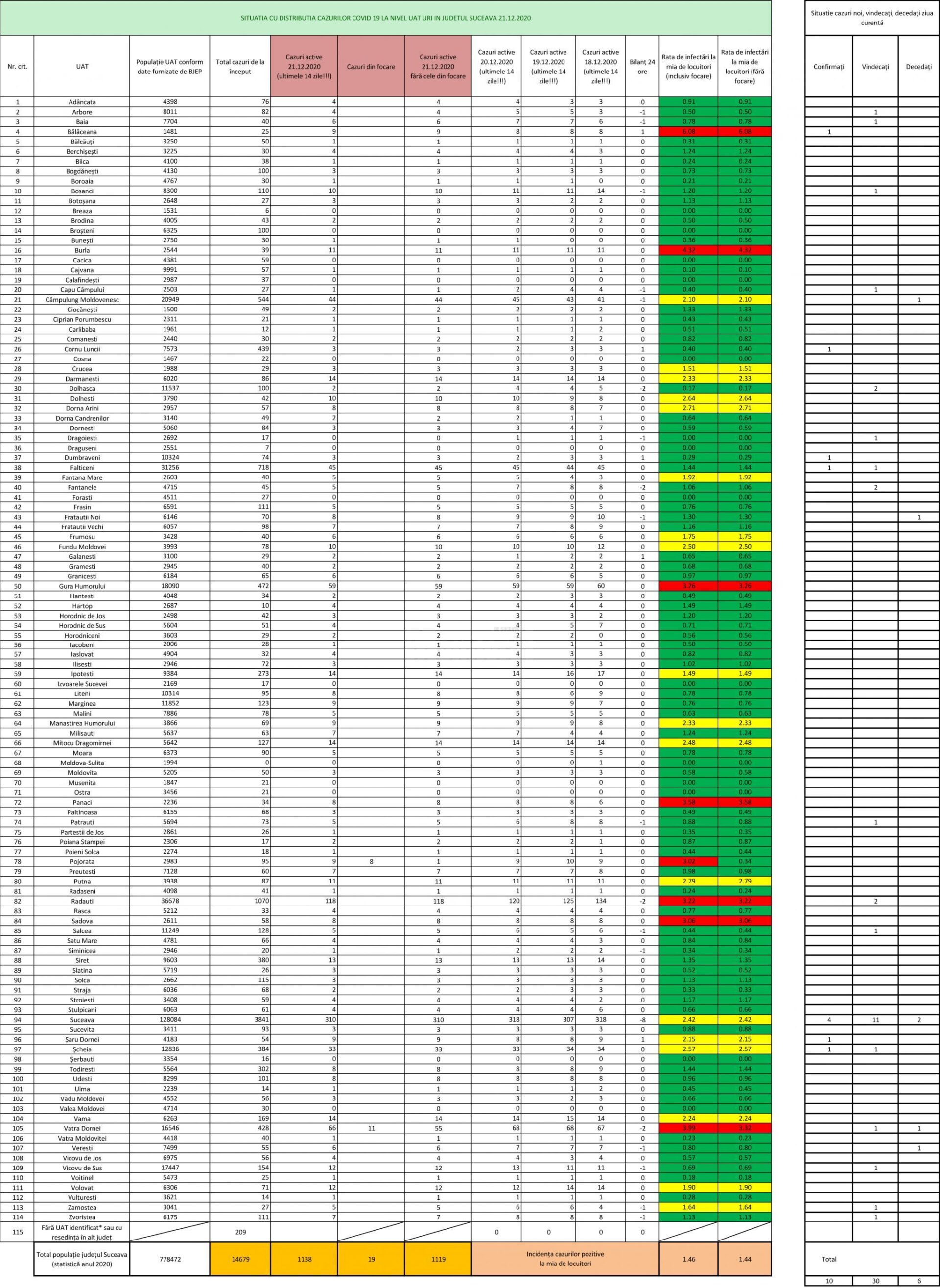 Numărul scăzut de teste a adus implicit și puține cazuri pozitive depistate. Dintre cazurile noi, aproape jumătate, adică 4, au fost înregistrate în municipiul Suceava. În municipiul reședință de județ erau luni 310 cazuri de Covid-19 active și o incidență a cazurilor pozitive de 2,42 la mie.