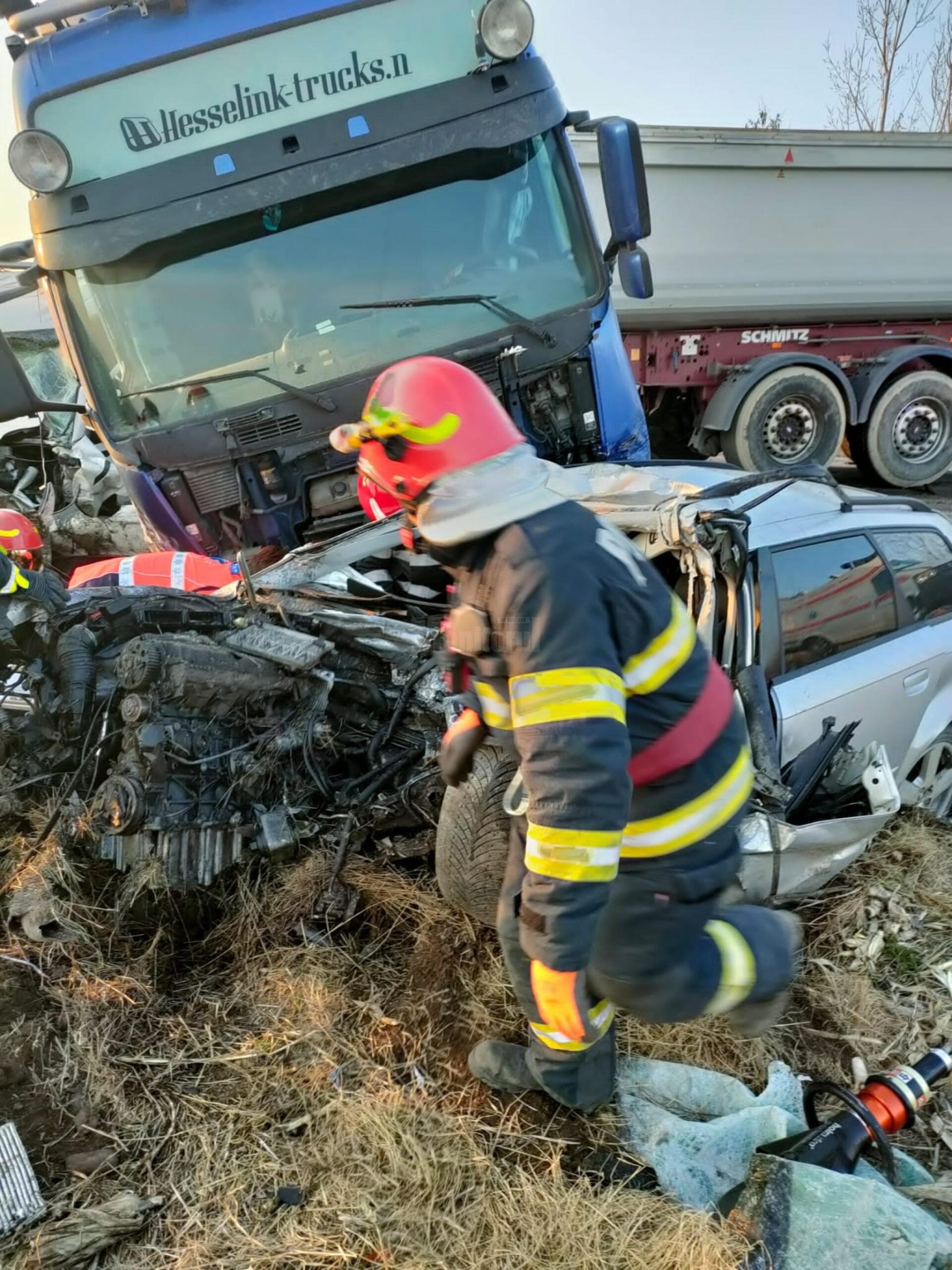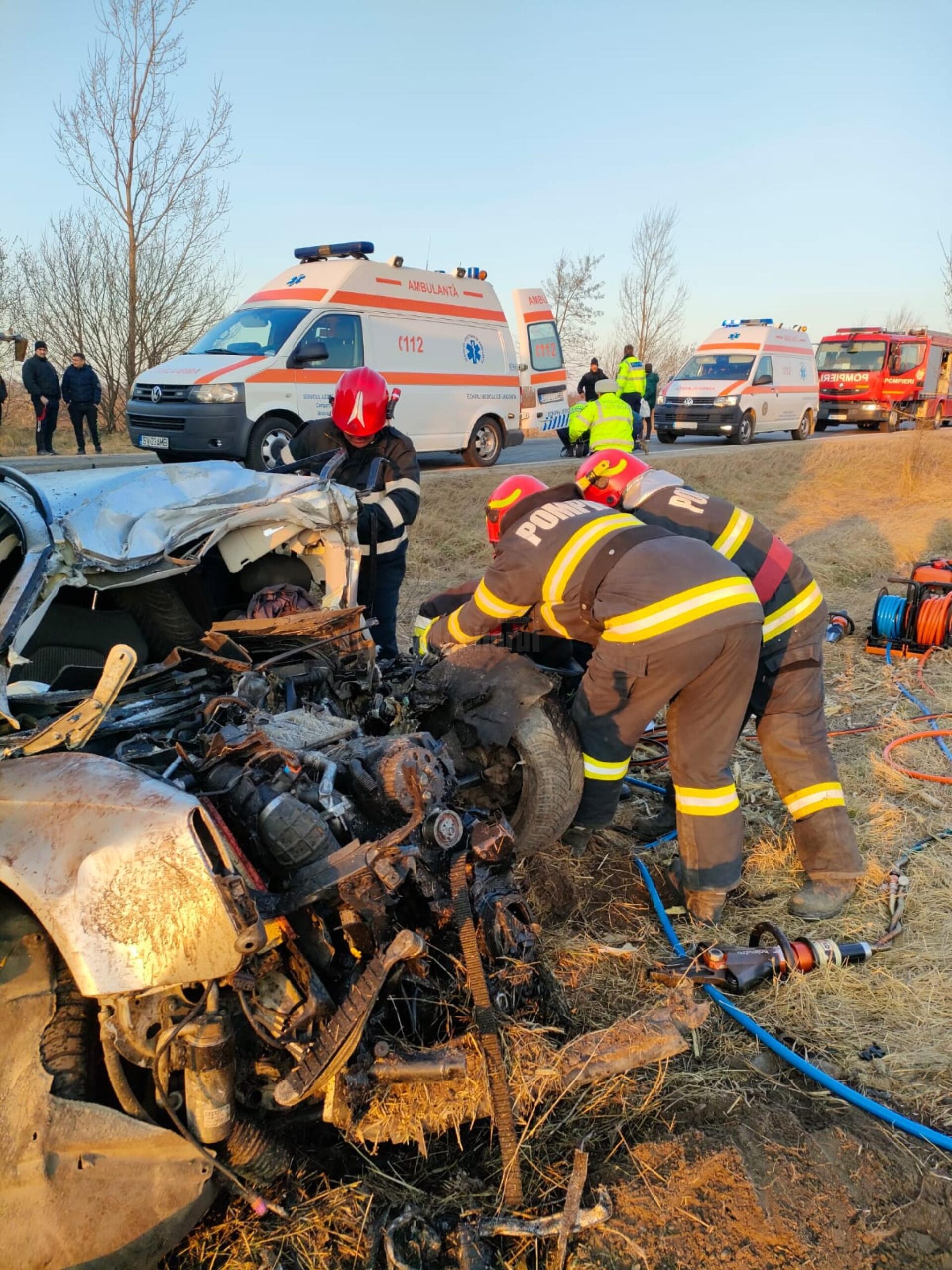 La locul accidentului au ajuns două autospeciale cu accesorii pentru descarcerare, în sprijinul echipajelor de pompieri venind și două echipaje SAJ. Din păcate, în timpul intervenției de descarcerare unul dintre ocupanții autoturismului, rămas captiv în interiorul acestuia, s-a stins. Echipajele de salvatori intervin la locul accidentului și la această oră, după ce cealaltă persoană extrasă din autoturism a fost transportată la spital pentru intervenții medicale.