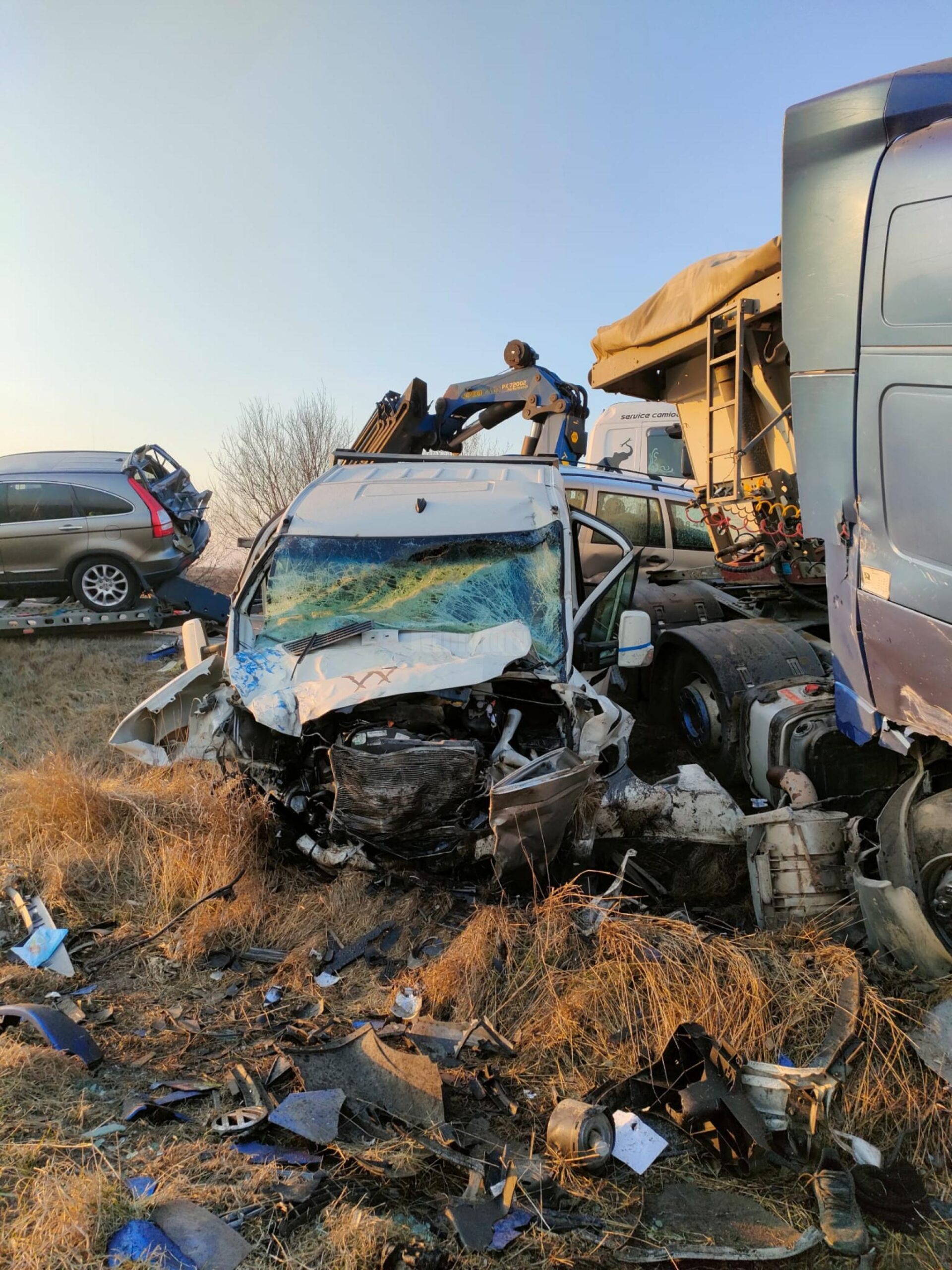 Cele două victime (ambele, femei) au fost extrase. Așa cum precizam, una dintre ele avea leziuni incompatibile cu viața. Cea de-a doua, în stare de semiconștiență, cu traumatisme multiple, a fost preluată de către un echipaj SAJ, și transportată la spital. Celelalte persoane implicate în accident, respectiv șoferul autotrenului și cel al autoutilitarei, nu au necesitat îngrijiri medicale.