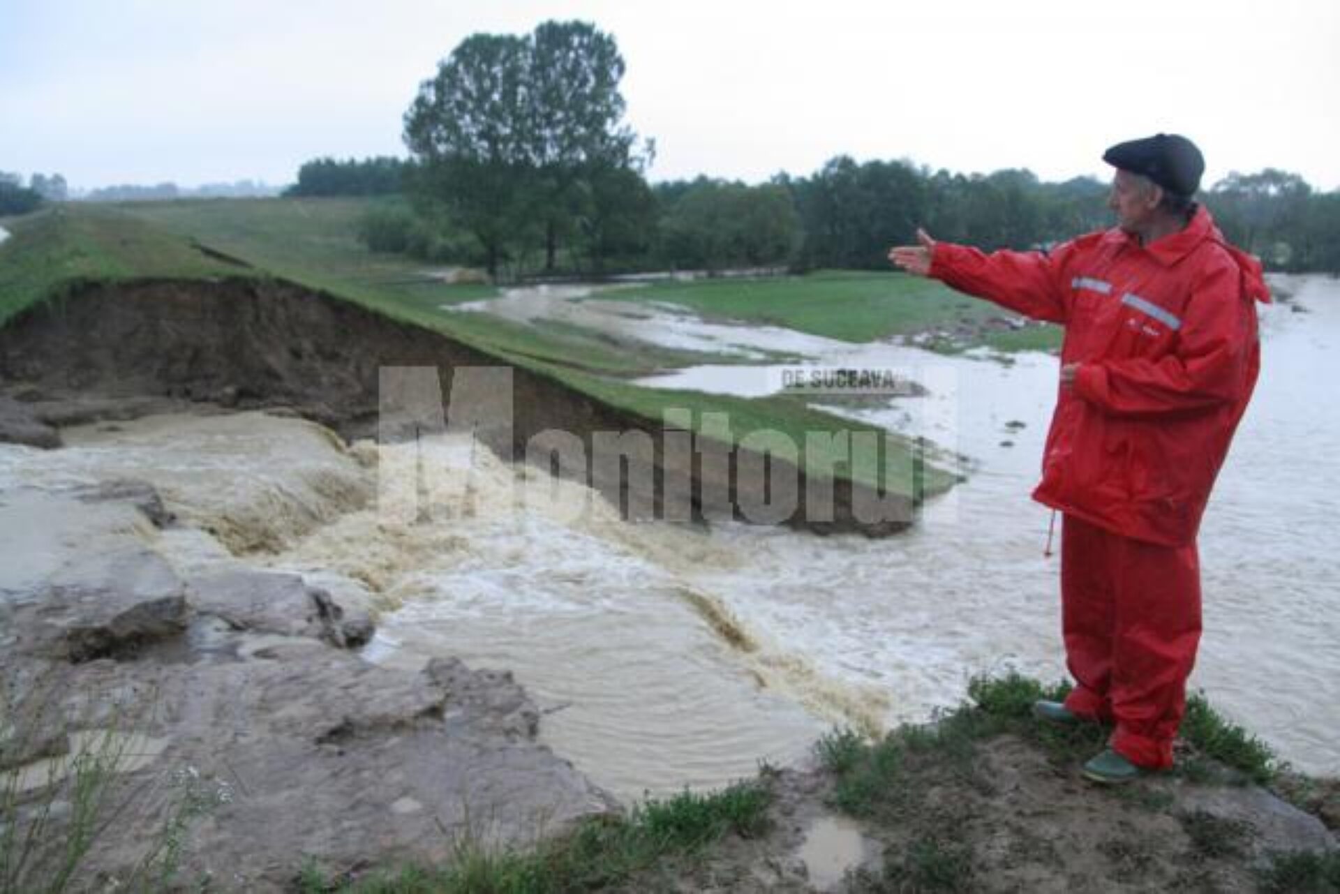 O astfel de avertizare au primit, joi noapte, locuitorii din Horodnicul de Sus și de Jos, dar și din cartierul Obor situat în municipiul Rădăuți. Pentru că și cel de-al doilea dig fisurat amenința să se rupă, la fața locului au fost chemați jandarmii pentru a umple saci cu nisip în vederea umplerii golurilor.