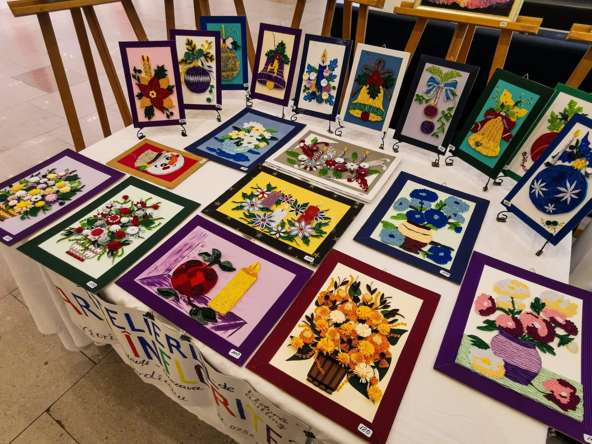 Totodată, la parterul Iulius Mall, în zona Bershka – LC WAIKIKI, 11 elevi din județul Suceava, sub îndrumarea profesoarei Viorica Bordianu de la Atelierul de creații artistice, pictură și quilling „Aripi Înflorite” Rădăuți, au pregătit o expoziție, cu vânzare, de picturi și tablouri din quilling. Picturile cuprind elemente cromatice din mai multe spectre creative și nu sunt doar rodul talentului fiecărui copil, ci și aspirațiile acestora, iar fâșiile de hârtie colorată răsucite frumos, în diverse forme și modele, au transformat materiale aparent banale în adevărate bijuterii. Banii din vânzarea lucrărilor vor fi folosiți pentru achiziționarea de produse necesare pentru realizarea creațiilor artistice.