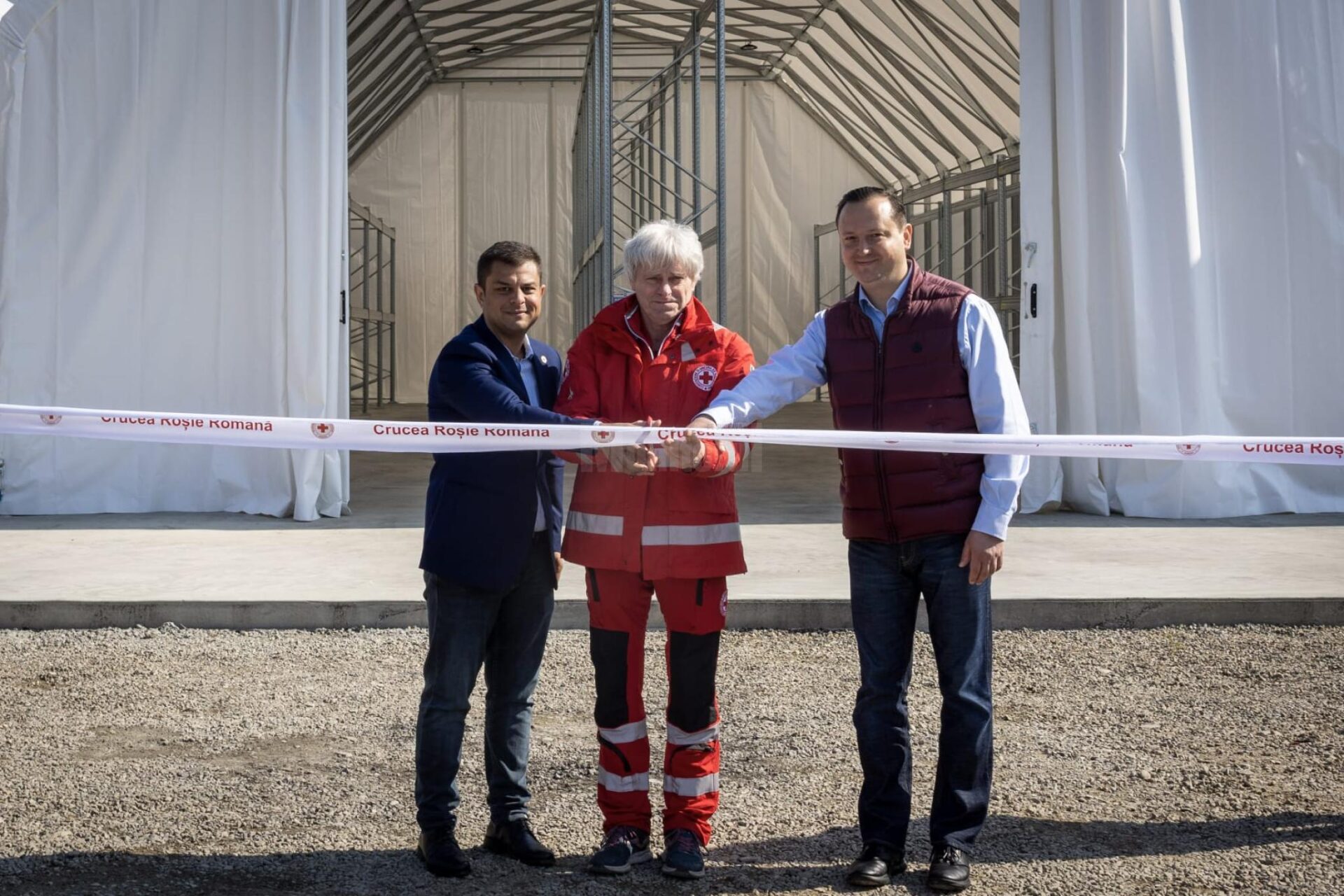 Panglica de inaugrare a fost tăiată de Alessandro Brunialti, delegat național pentru operațiuni de la Crucea Roșie italiană, Marius Ion, director de logistică și achiziții în cadrul Crucii Roșii române și de Alexandru Moldovan, prefectul de Suceava.
