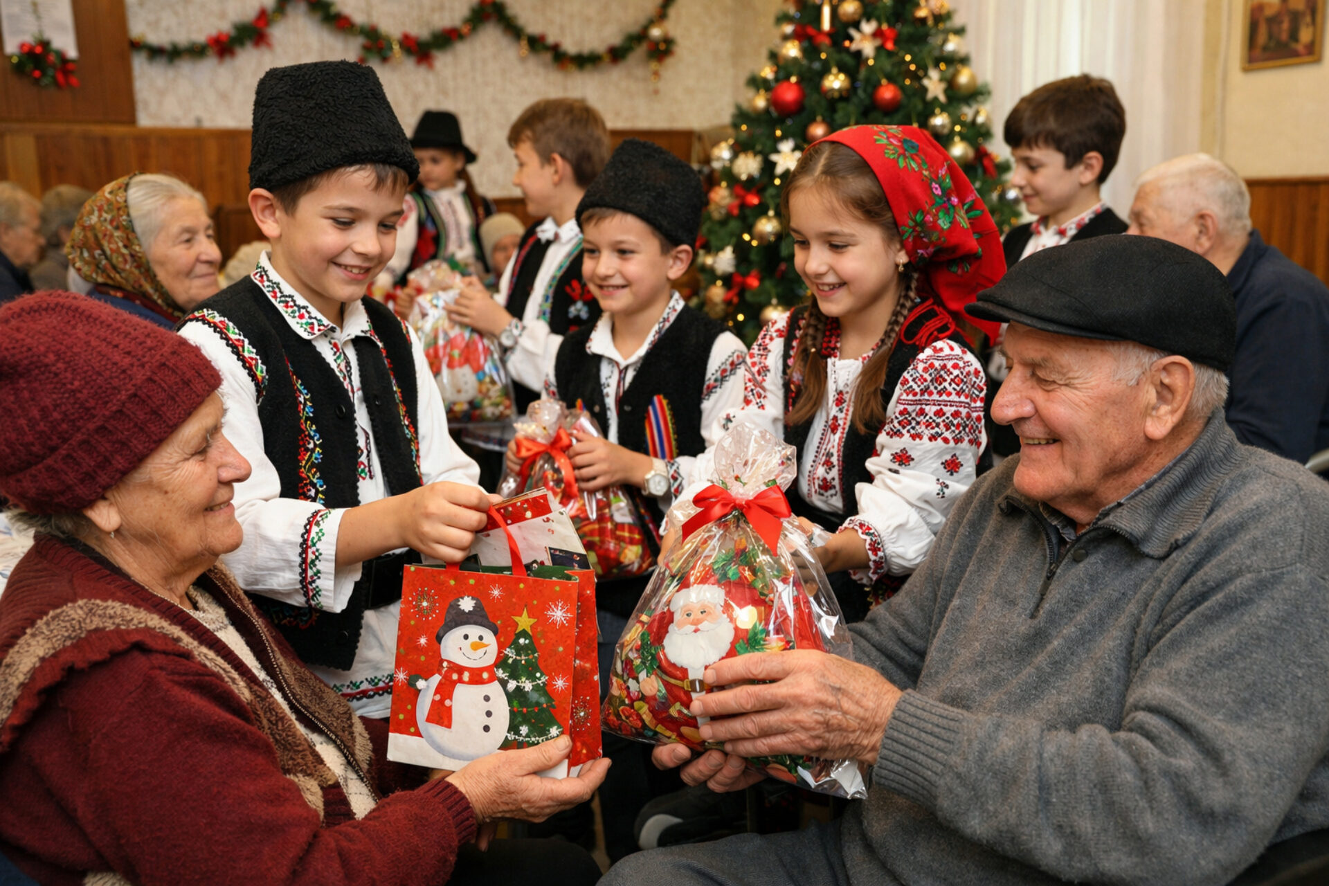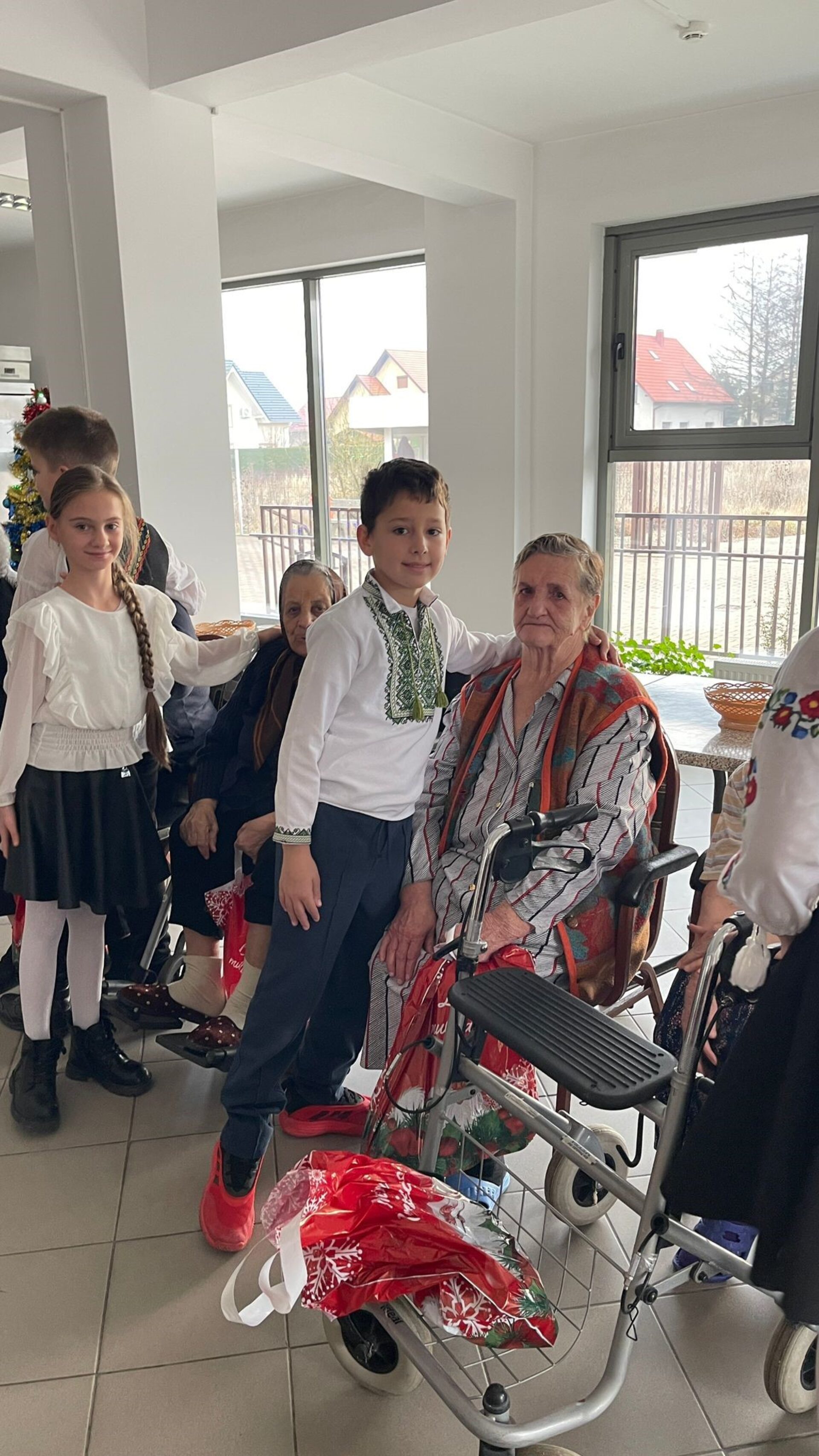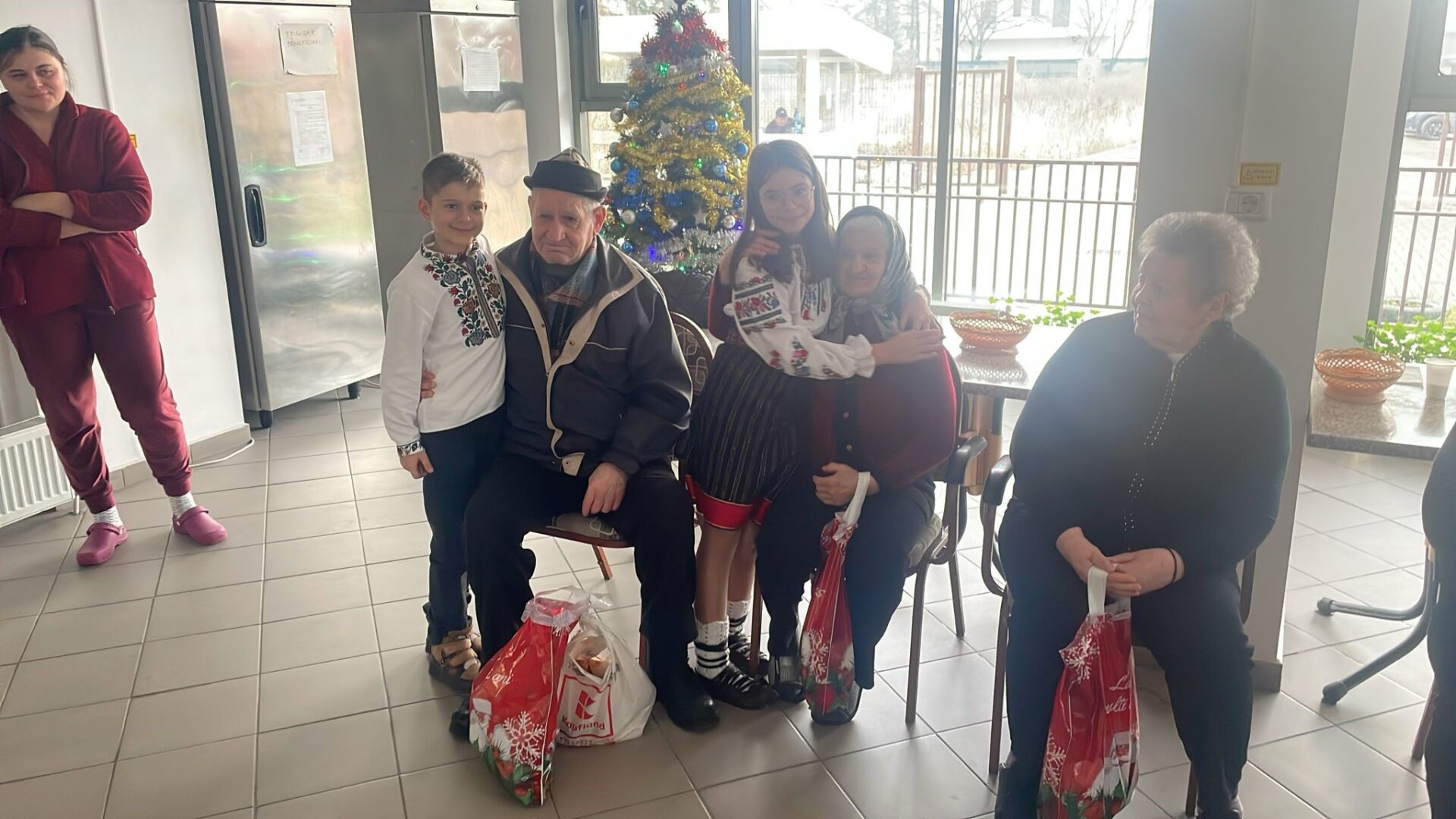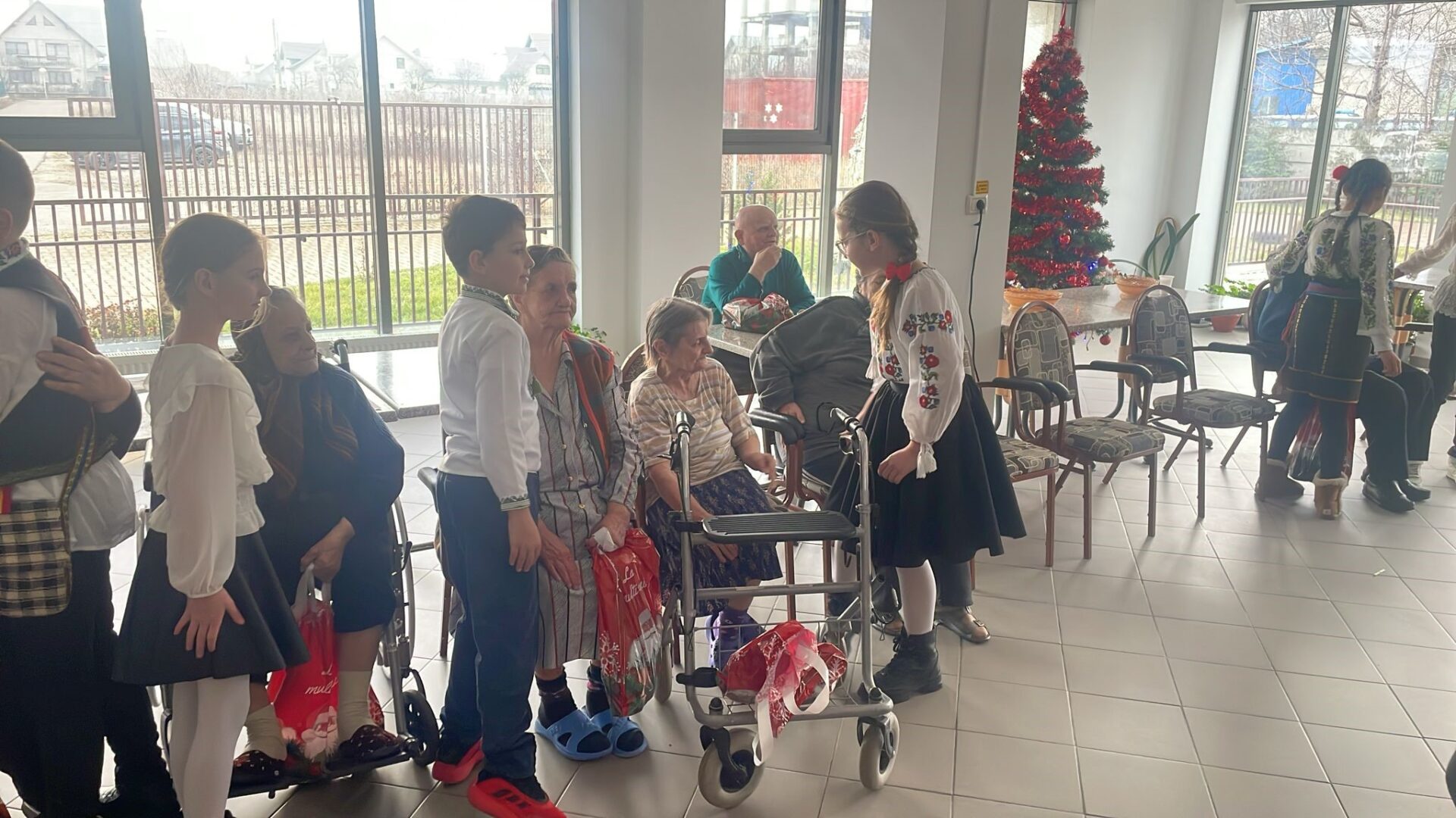 La finalul programului, elevii au oferit daruri fiecărui beneficiar al centrului, dar și cel mai prețios cadou: o îmbrățișare caldă. Gestul lor a fost însoțit de urări spuse din inimă – „Sărbători binecuvântate!” – cuvinte simple, dar pline de căldură, care au adus lacrimi de bucurie și recunoștință în ochii bunicilor.