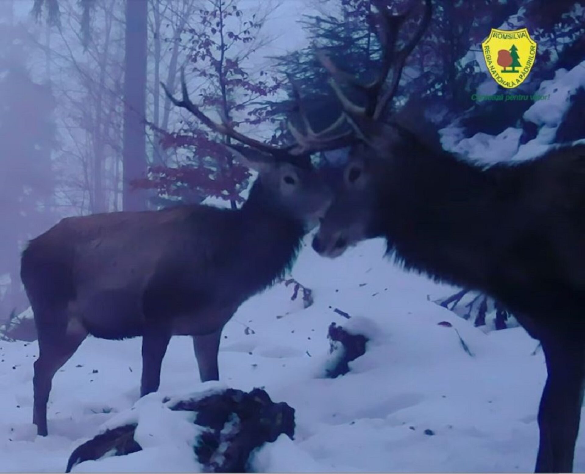 Doi cerbi tineri, care își testează forța, mai în joacă, mai în serios, într-o pădure din Parcul Național Călimani, au fost surprinși într-o filmare realizată cu o cameră de monitorizare amplasată de către rangerul Cristin Cireș. Imaginile video, postate pe pagina de socializare a Regiei Naționale a Pădurilor, au devenit virale, fiind apreciate de mii de oameni.