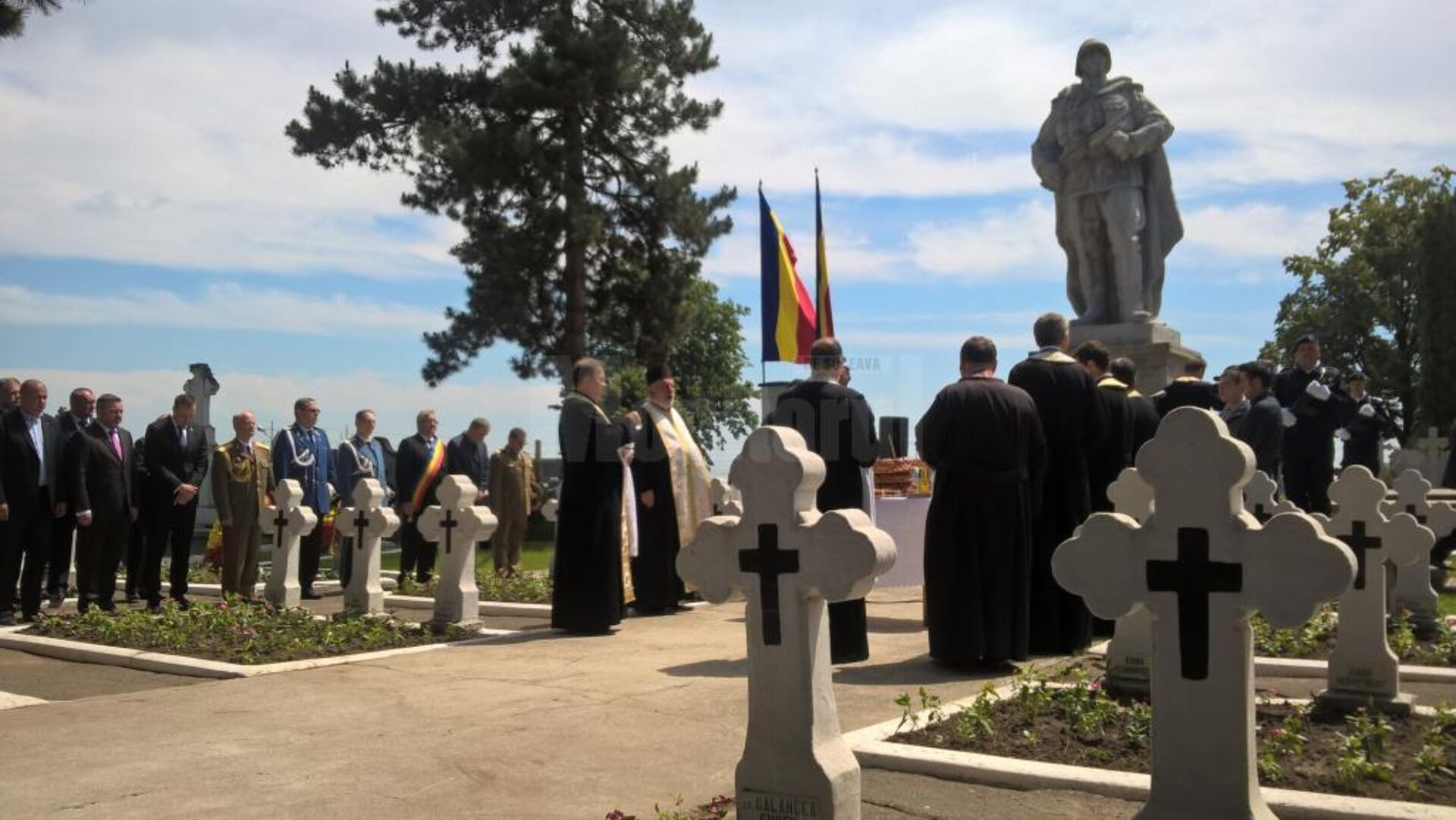 Ziua Eroilor României a fost marcată, joi, în municipiul Suceava printr-un ceremonial militar și religios organizat la Monumentul Eroilor Români din Cimitirul Pacea. Ca în fiecare an, ceremonialul a început cu intonarea Imnului Național, după care un sobor de preoți a oficiat o slujbă de pomenire a celor care au murit pentru apărarea țării. Au urmat depunerile de coroane de flori. Veterani de război, cadre militare în activitate, în rezervă și în retragere, reprezentanți ai instituțiilor publice, ai structurilor Ministerului Afacerilor Interne și grupuri de elevi au depus coroane de flori, atât la impozantul monument al eroilor, cât și la mormintele din jurul acestuia, o parte morminte ale unor eroi cunoscuți, altele ale unor eroi necunoscuți.