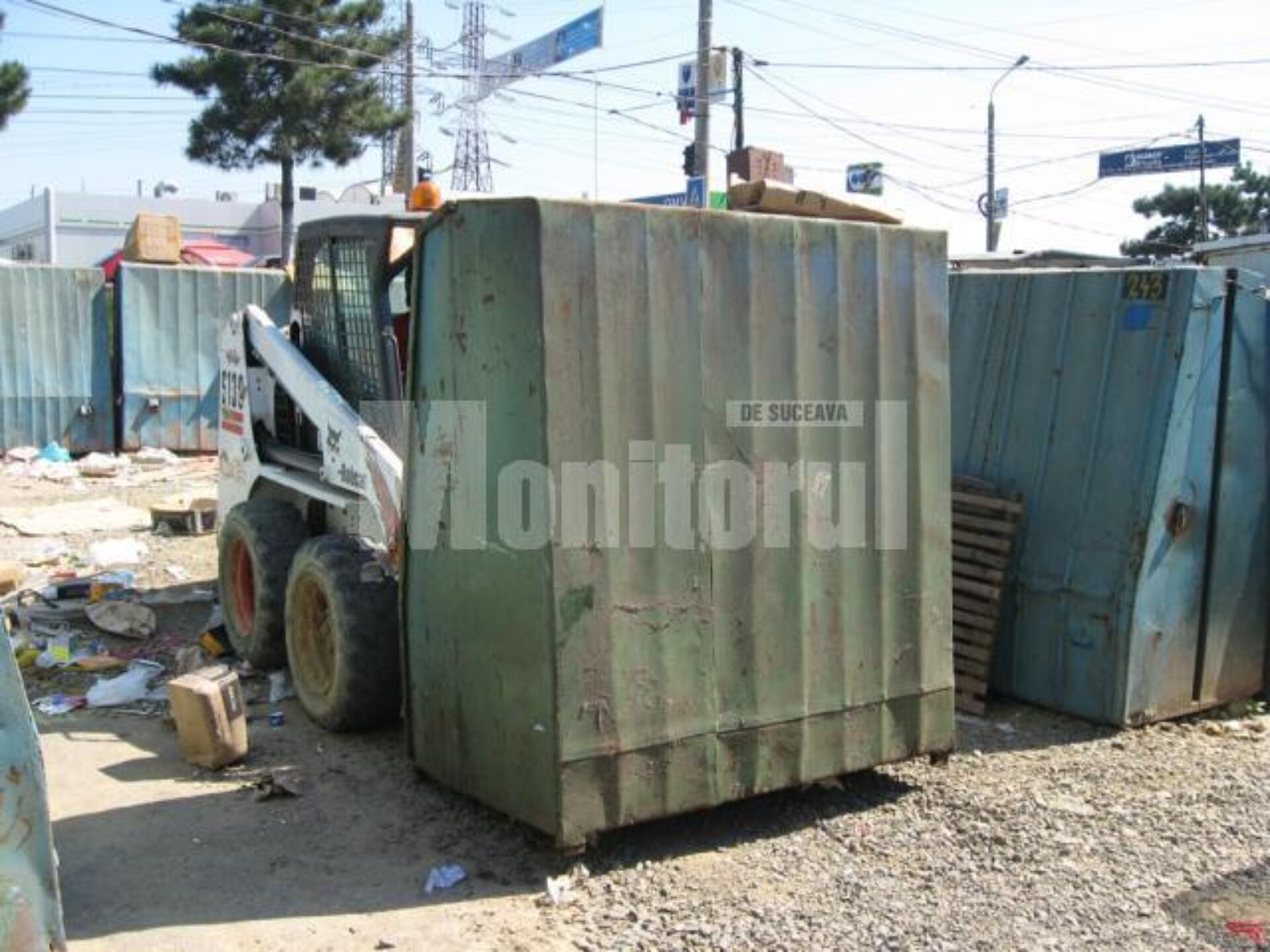 Chioscurile din partea din fata a Bazarului, luate pe sus cu utilaje speciale