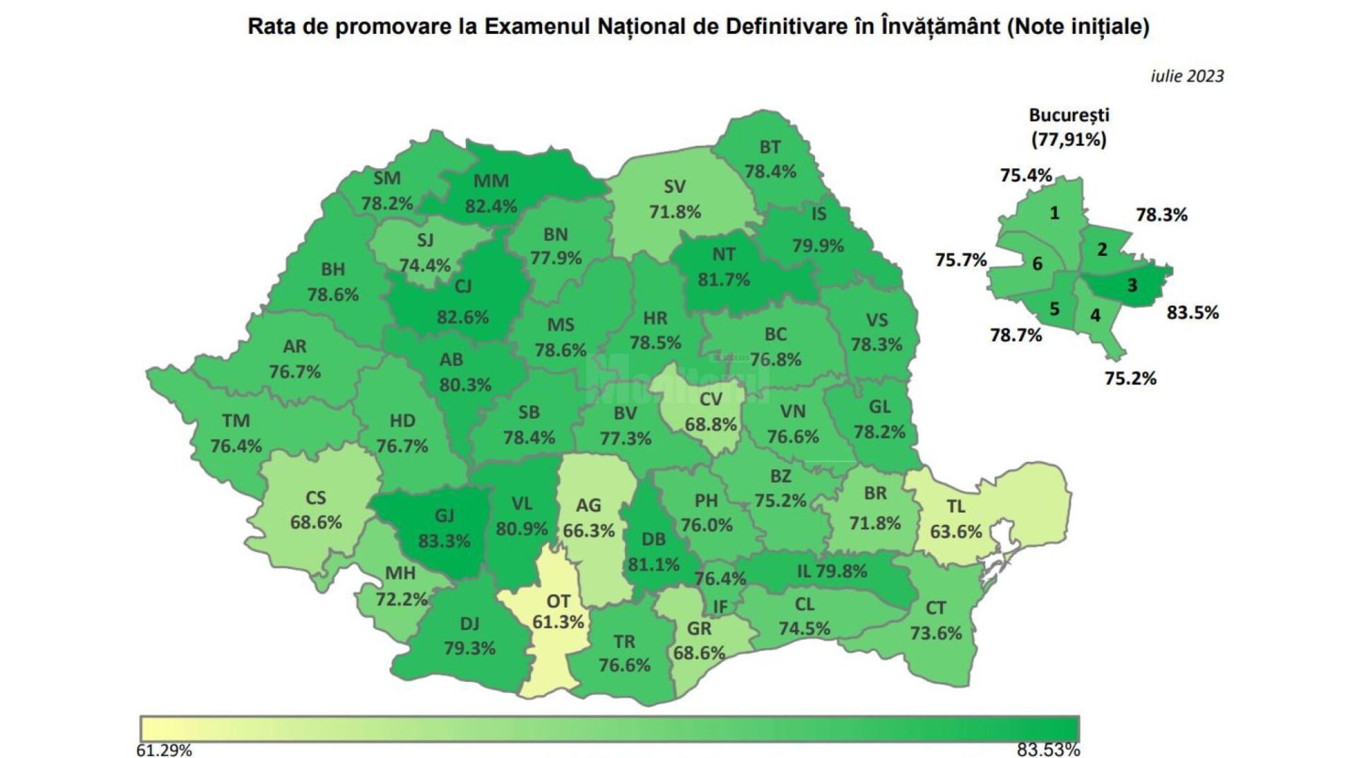 Rezultatul plasează județul nostru sub media națională, unde rata de succes a fost de 76,9%.