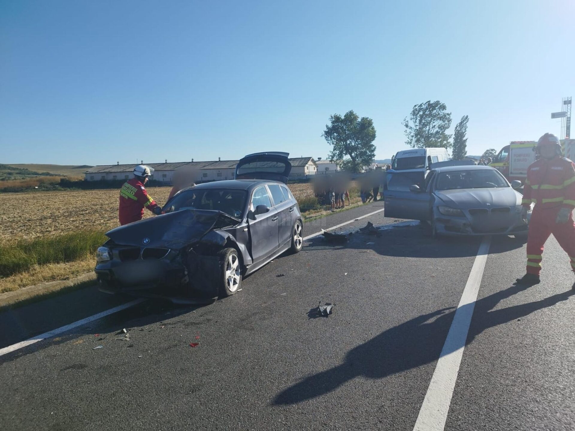 După acest impact, al doilea BMW a fost proiectat într-un Mercedes Benz din față, condus de un bărbat în vârstă de 57 de ani, din Ilișești.