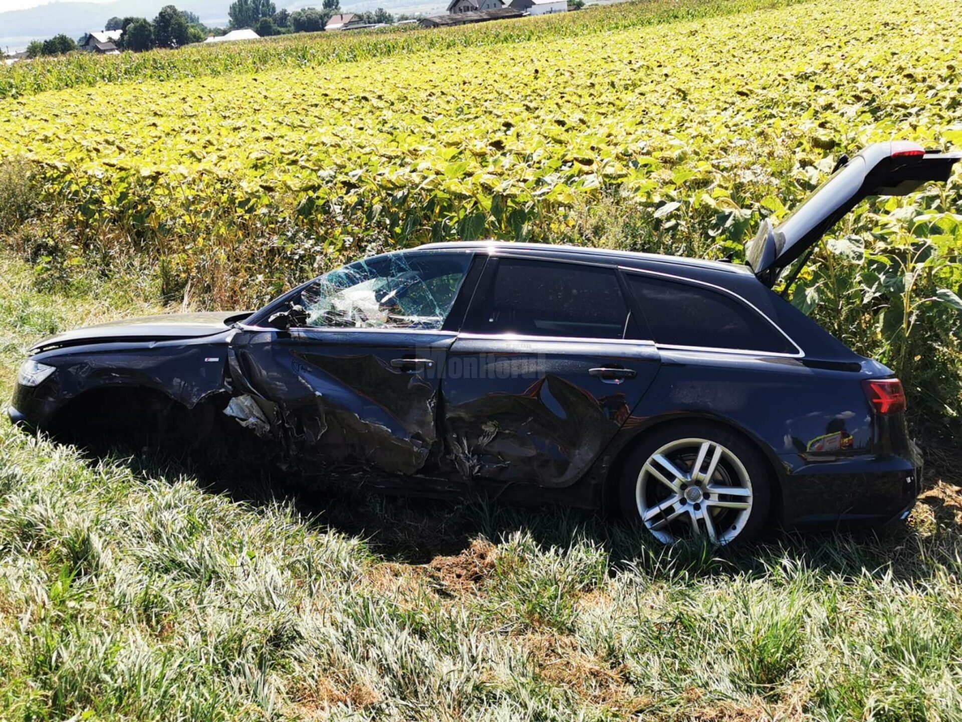 Un accident rutier violent, soldat cu cinci răniți transportați cu ambulanțele la Spitalul Județean Suceava s-a petrecut sâmbătă, în jurul orei 12.30, pe E 85, la ieșirea din Dărmănești spre Siret. În urma unui impact violent, două mașini au fost proiectate în decor, una răsturnându-se la marginea unui lan de floarea soarelui. Pompierii militari suceveni care au intervenit la fața locului transmit că în cele două mașini erau nouă persoane. Cinci dintre oameni, printre ei și trei minori, au fost transportați la spital. În cazul celorlalte persoane, evaluările de la fața locului au arătat că nu au suferit leziuni. La fața locului au intervenit pompierii militari de la Detașamentul Suceava cu modulul SMURD (autospecială pentru descarcerare și o ambulanță SMURD B2), o ambulanță SMURD TIM, cu sprijinul a două ambulanțe de la SAJ Suceava.