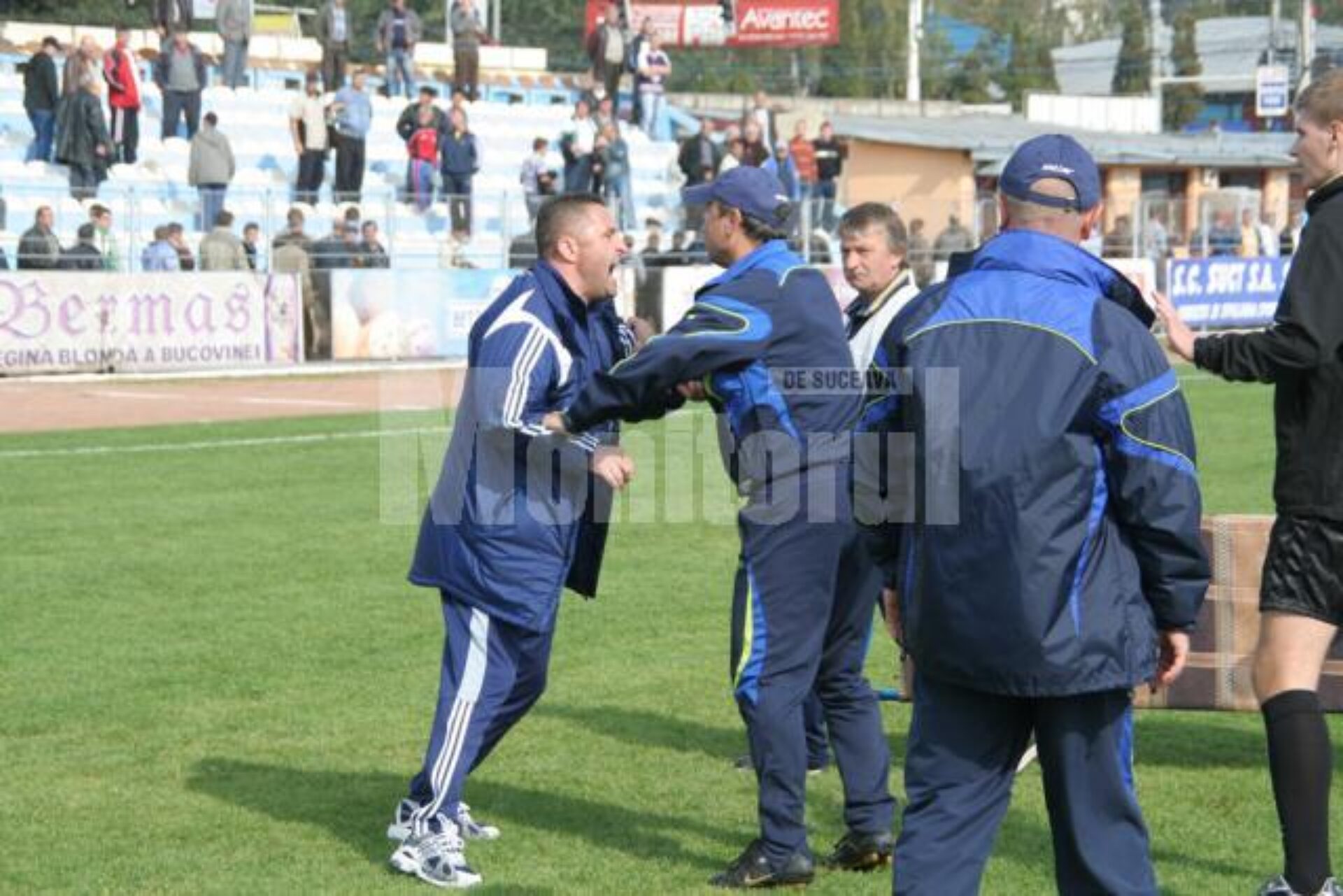 „Ce-am pățit în ultima perioadă la Suceava n-am trăit în întreaga mea carieră. Am pierdut la ’masa verde’ meciul cu Progresul și apoi ni s-au anulat victoriile cu Ceahlăul și FC Botoșani, succese obținute pe munca mea și a băieților. Pe necunoașterea regulamentului am fost excluși din Cupa României, după care am primit o suspendare exagerată pe 9 etape. Toată această înlănțuire de probleme m-au adus în starea în care sunt acum. Recunosc că am greșit pentru că am pătruns pe teren în condițiile în care eram deja suspendat, dar n-am mai suportat. Doresc să fac treabă bună la Suceava, dar pentru asta trebuie să fiu și sprijinit. Din păcate, nu tragem cu toții la aceeași căruță. Mai bine ne desființăm decât să continuăm în aceeași manieră”, a declarat cu năduf tehnicianul sucevean.
