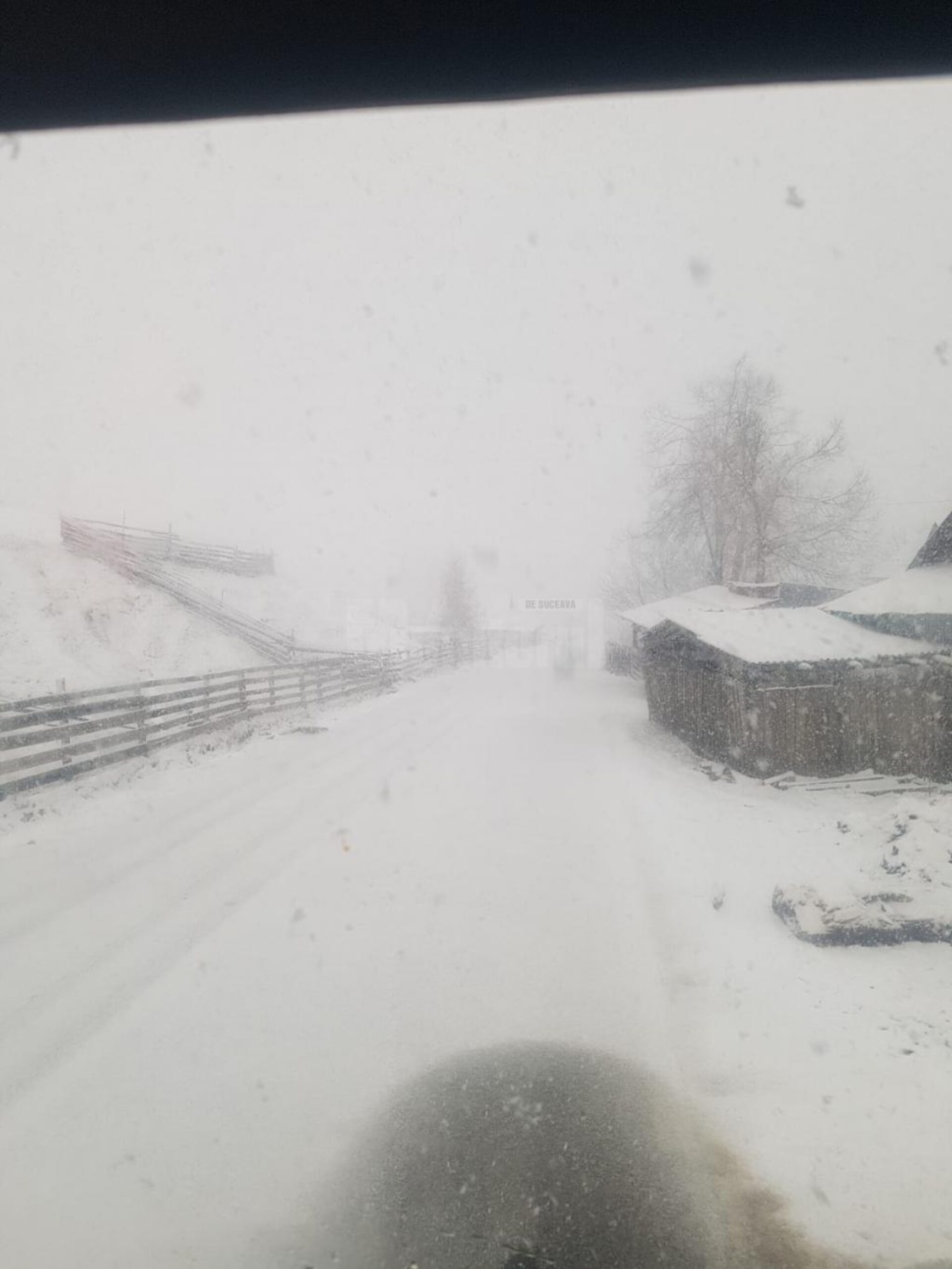 În zona de munte însă, este o atmosferă de iarnă veritabilă. Pe DN17A, în pasul Palma, este așezat strat destul de consistent de zăpadă, iar utilaje ale Secției de Drumuri Naționale Câmpulung Moldovenesc au intervenit pentru readucerea carosabilului la condiții optime, după cum se vede și în imaginile atașate la acest articol.