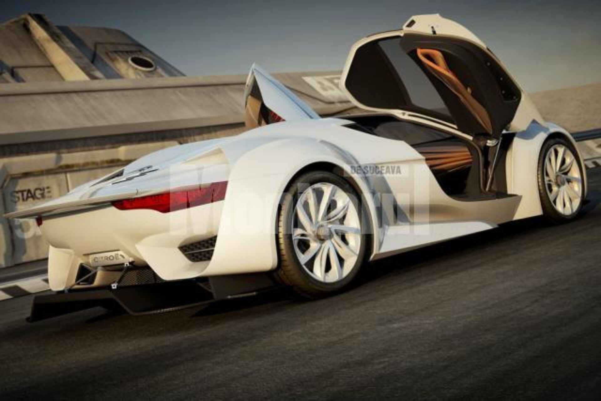 Ușile tip fluture, jantele de 21 de inch din aluminiu cu „efect de diamant” și platforma cu branhii ca de rechin de deasupra stopurilor constituie elementele de atracție ale conceptului Citroën.
