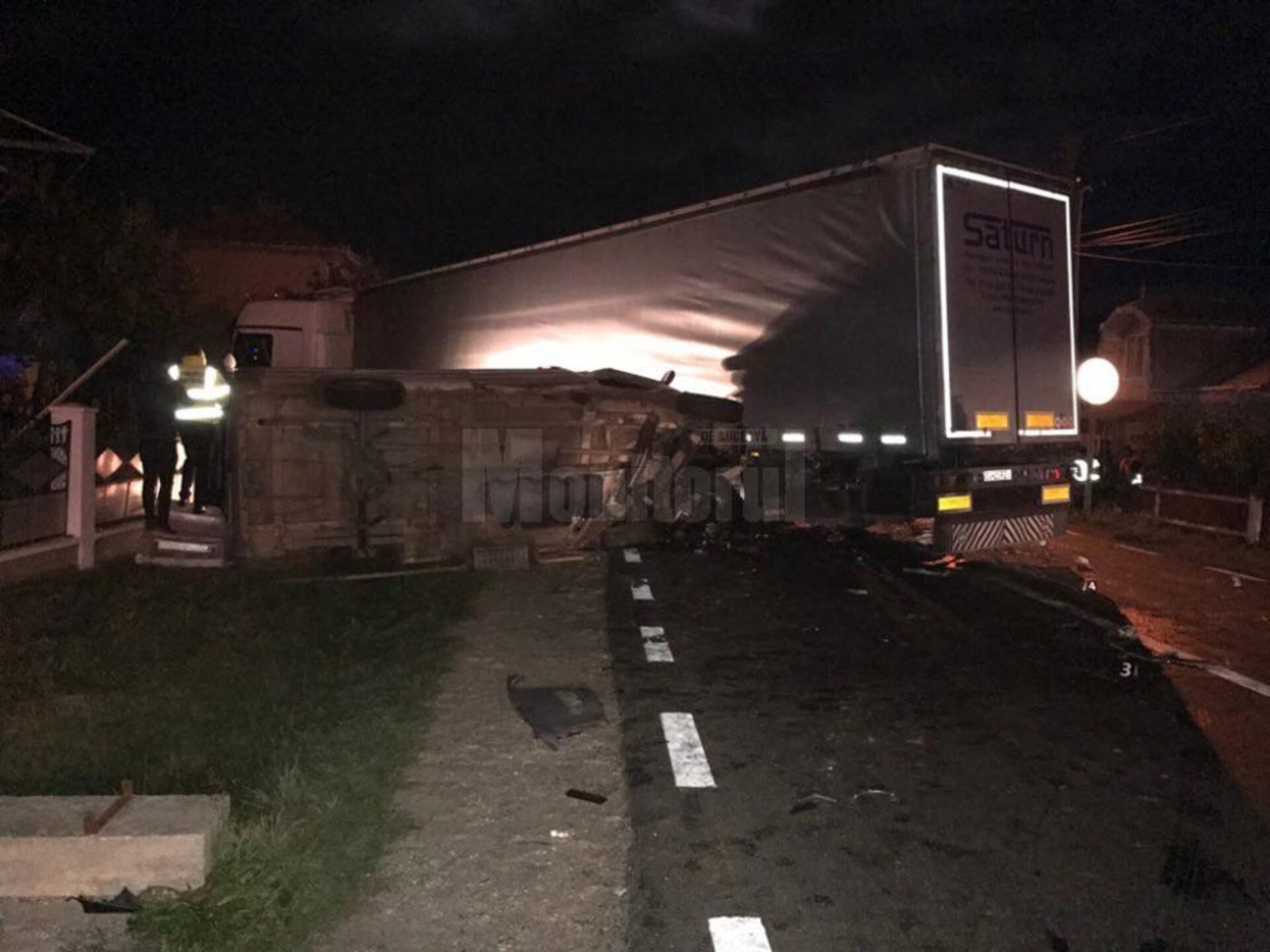 Joi, în jurul orei 19.30, pe DN 2 E, pe raza satului Brăiești, comuna Cornu Luncii, o autoutilitară Mercedes Benz, condusă de Adrian Danci, în vârstă de 44 de ani, din Poiana Stampei, care circula dinspre Fălticeni spre Gura Humorului, a pătruns pe sensul opus, lovind în partea stânga-față autotrenul condus regulamentar de Gheorghe Buliga, în vârstă de 50 de ani, din comuna Arbore. Autoutilitara a intrat practic sub roata stânga-față a tirului, care, în urma impactului violent, a ajuns pe contrasens și a intrat până în curtea unei case.