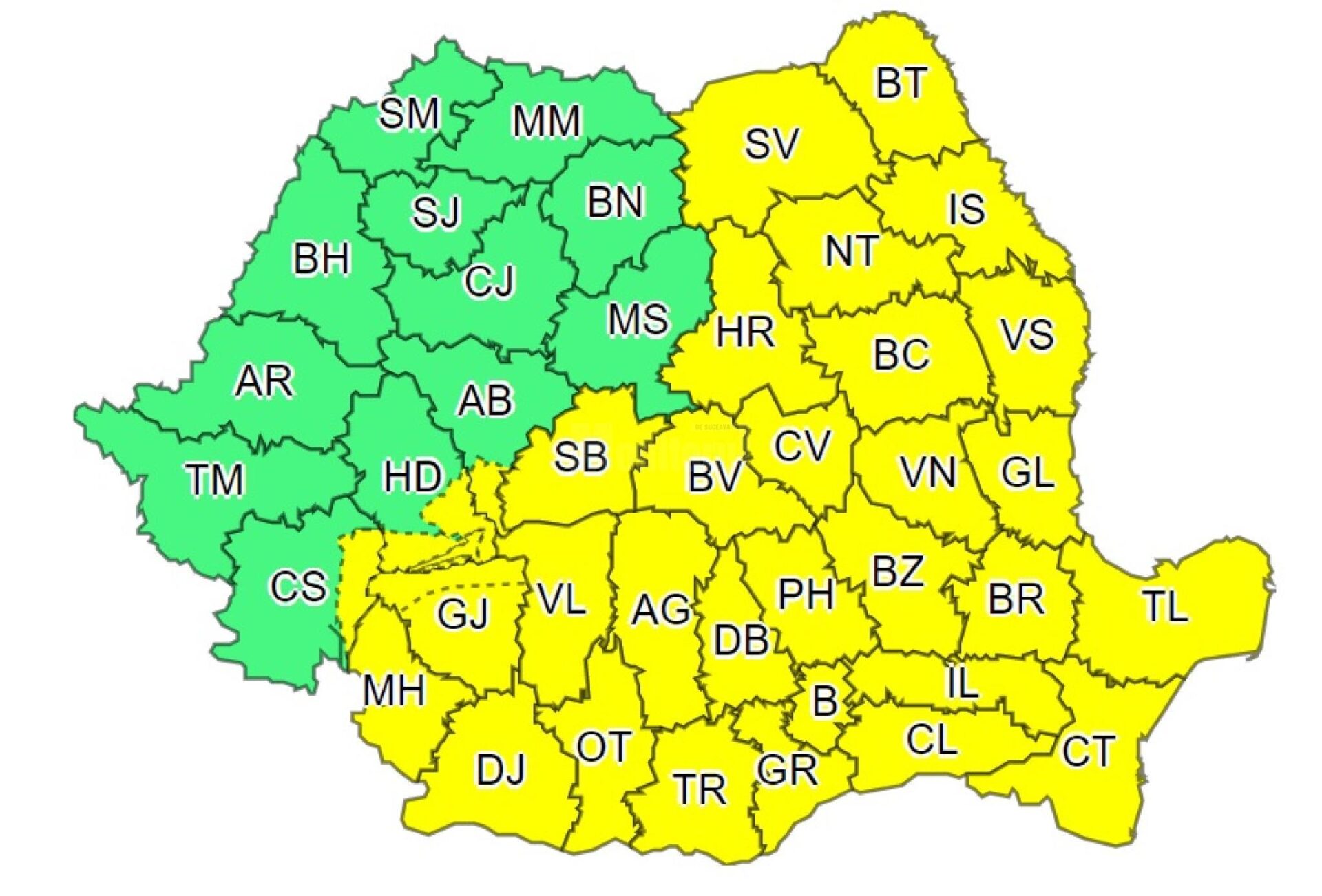 De asemenea, pe parcursul zilei de miercuri, în intervalul orar 8:00 – 21:00, intră în vigoare un al doilea Cod galben, de intensificări ale vântului.