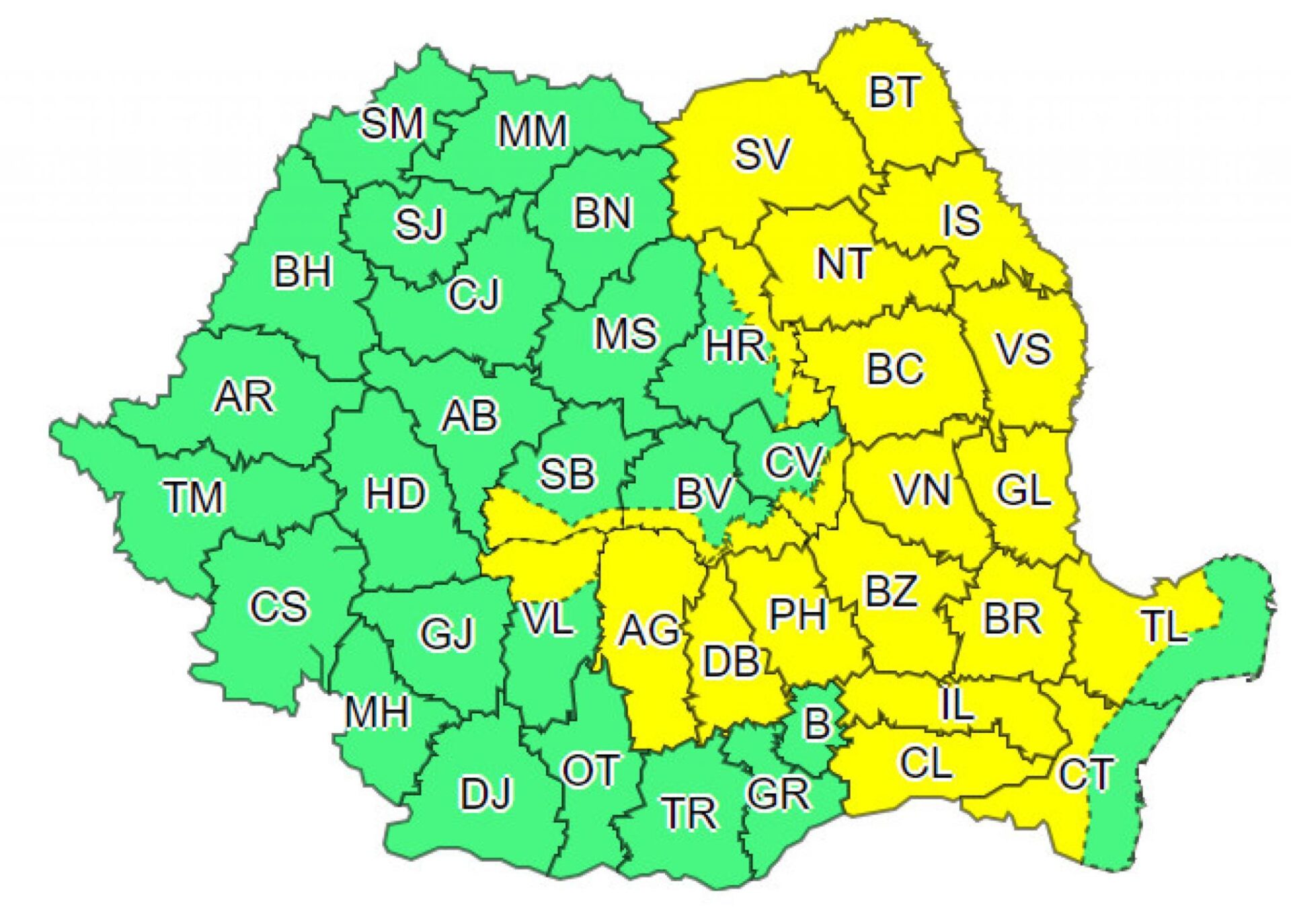 Administrația Națională de Meteorologiea emis miercuri o atenționare meteorologică de instabilitate atmosferică temporar accentuată valabilă de miercuri la amiază până joi dimineață.