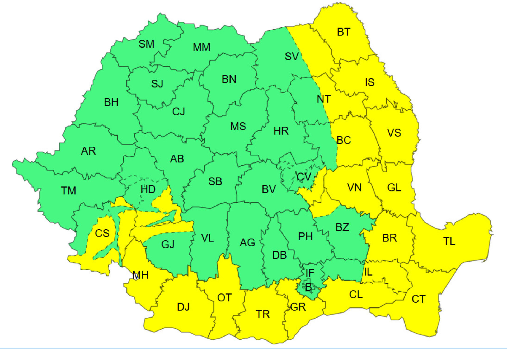 În județele Botoșani, Iași, în zona joasă a județelor Suceava, Neamț, Bacău, precum și în zona de munte a județelor Caraș Severin, Hunedoara, Gorj, Buzău, Vrancea și Covasna temporar va ninge viscolit, se va depune strat de zăpadă în medie de 5…15 cm și vizibilitatea va fi redusă.