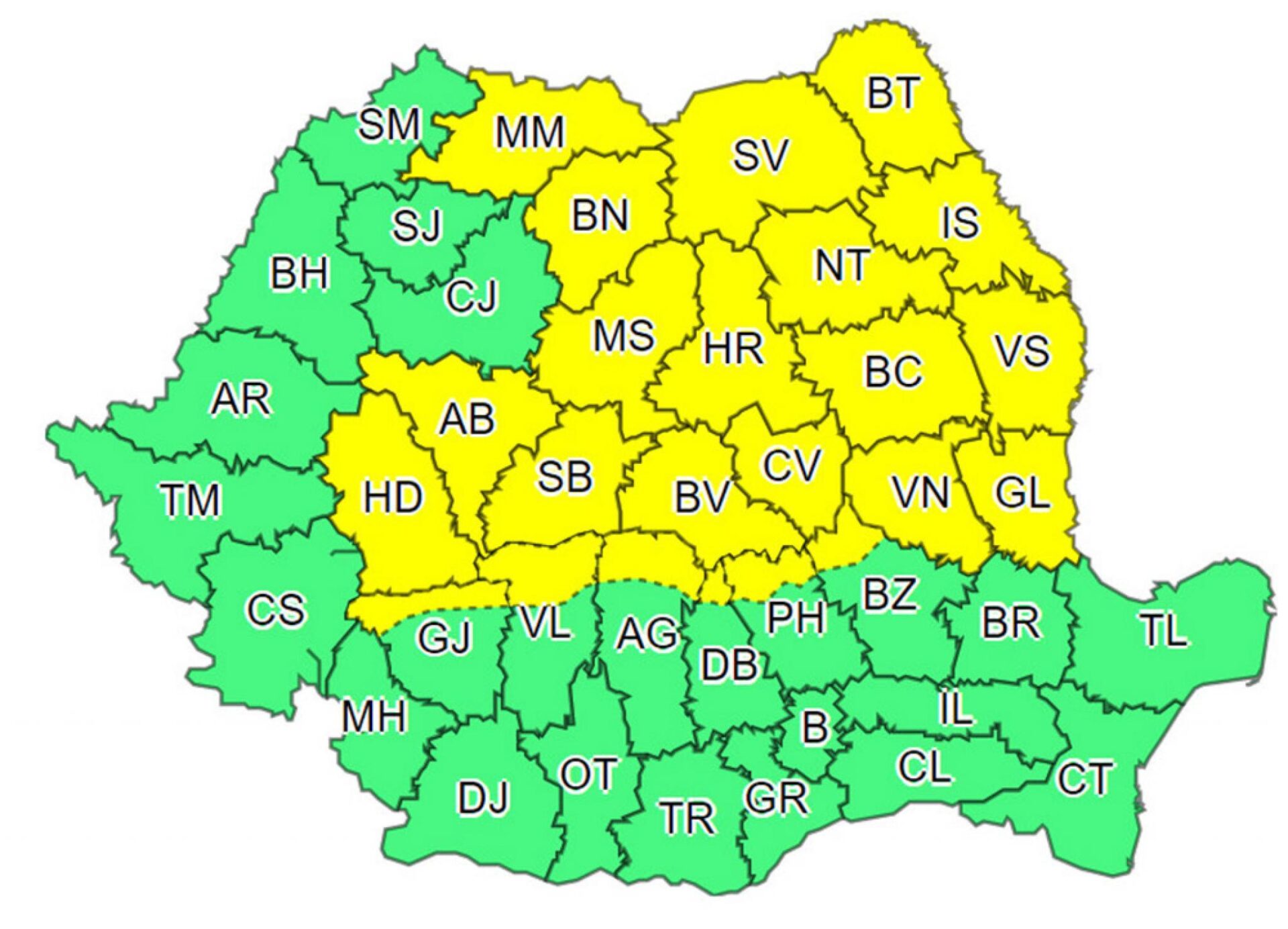 În funcție de evoluția și intensitatea fenomenelor meteorologice, Administrația Națională de Meteorologie va emite avertizări de vreme severă imediată.