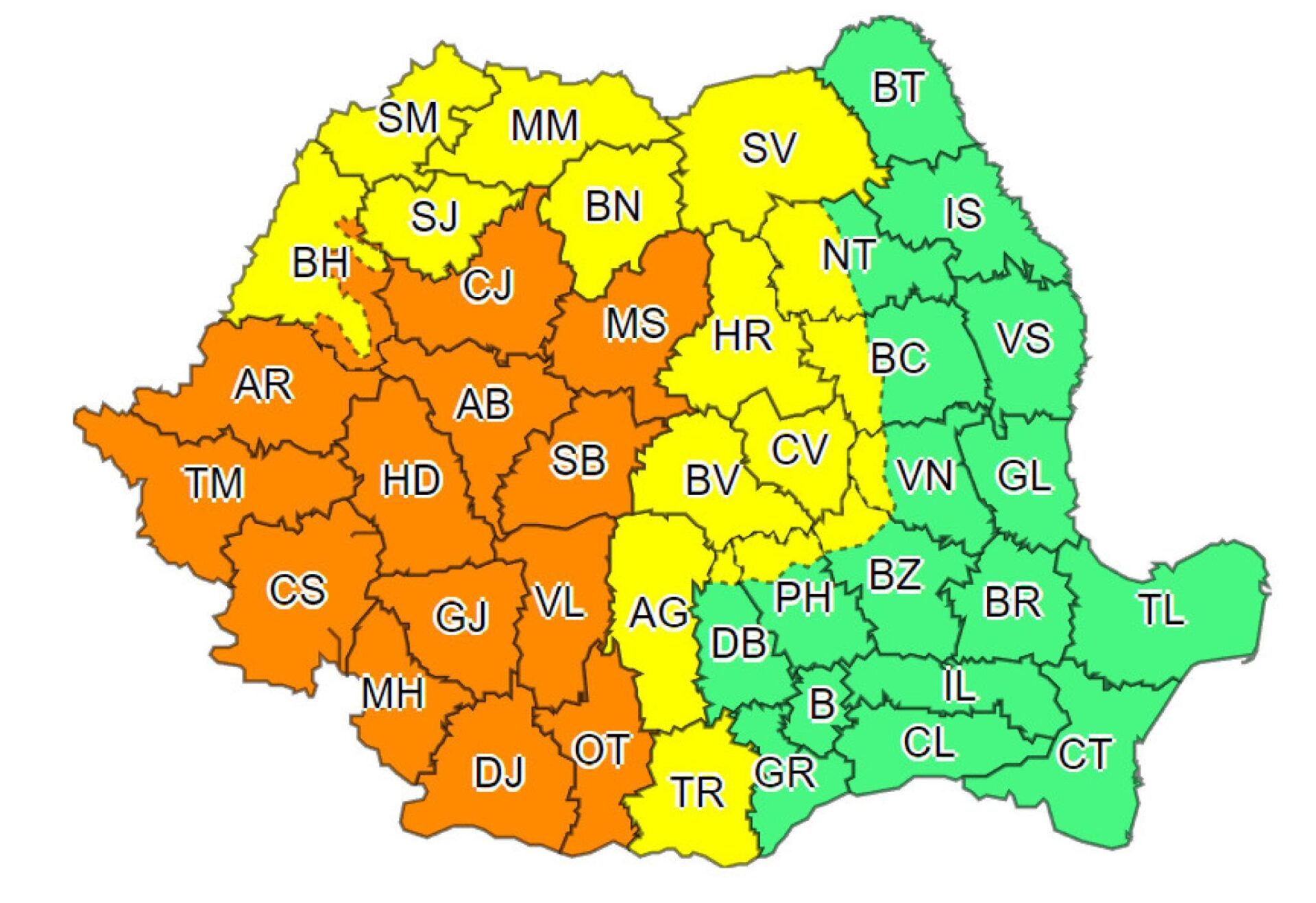 Administrația Națională de Meteorologie a emis joi o nouă avertizare meteo, de tip cod galben, de instabilitate atmosferică, dar și una de tip portocaliu, de ploi abundente.
